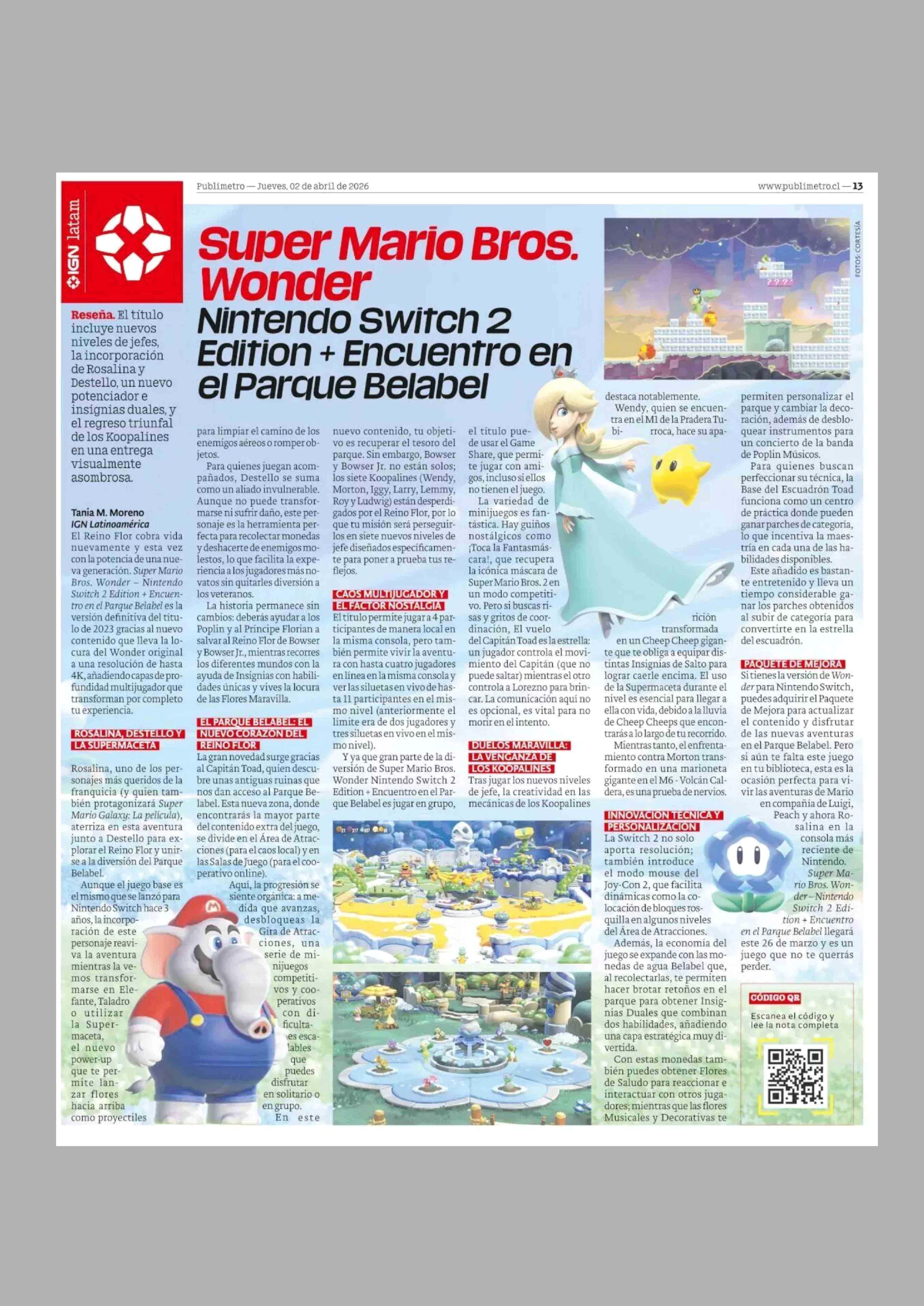 Super Mario Bros. Wonder Nintendo Switch 2 Edition + Encuentro en el Parque Belabel 02-04-2026 Publimetro |