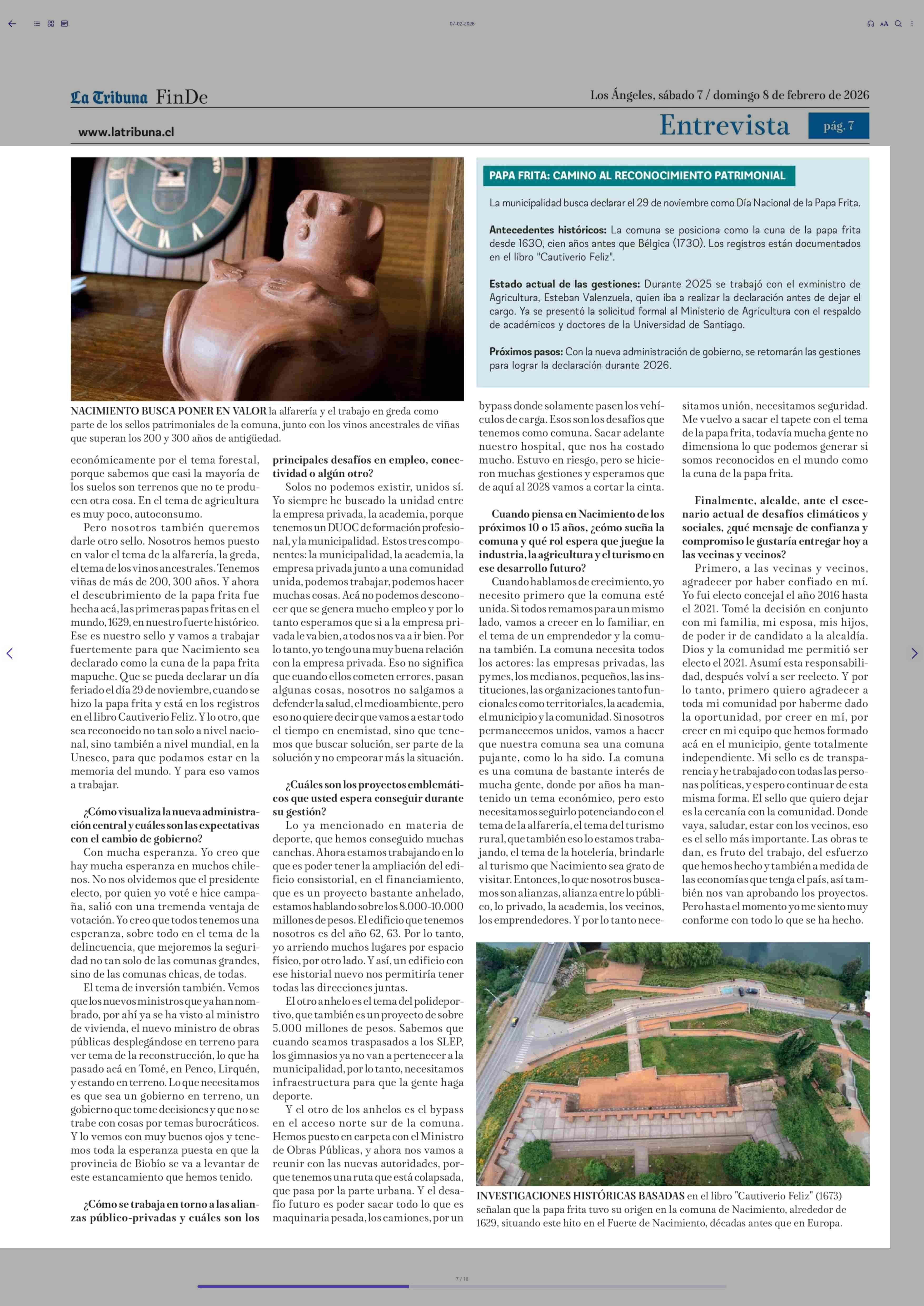 Título: Carlos Toloza Soto: "Queremos que Nacimiento sea reconocido como la cuna mundial de la papa frita mapuche"