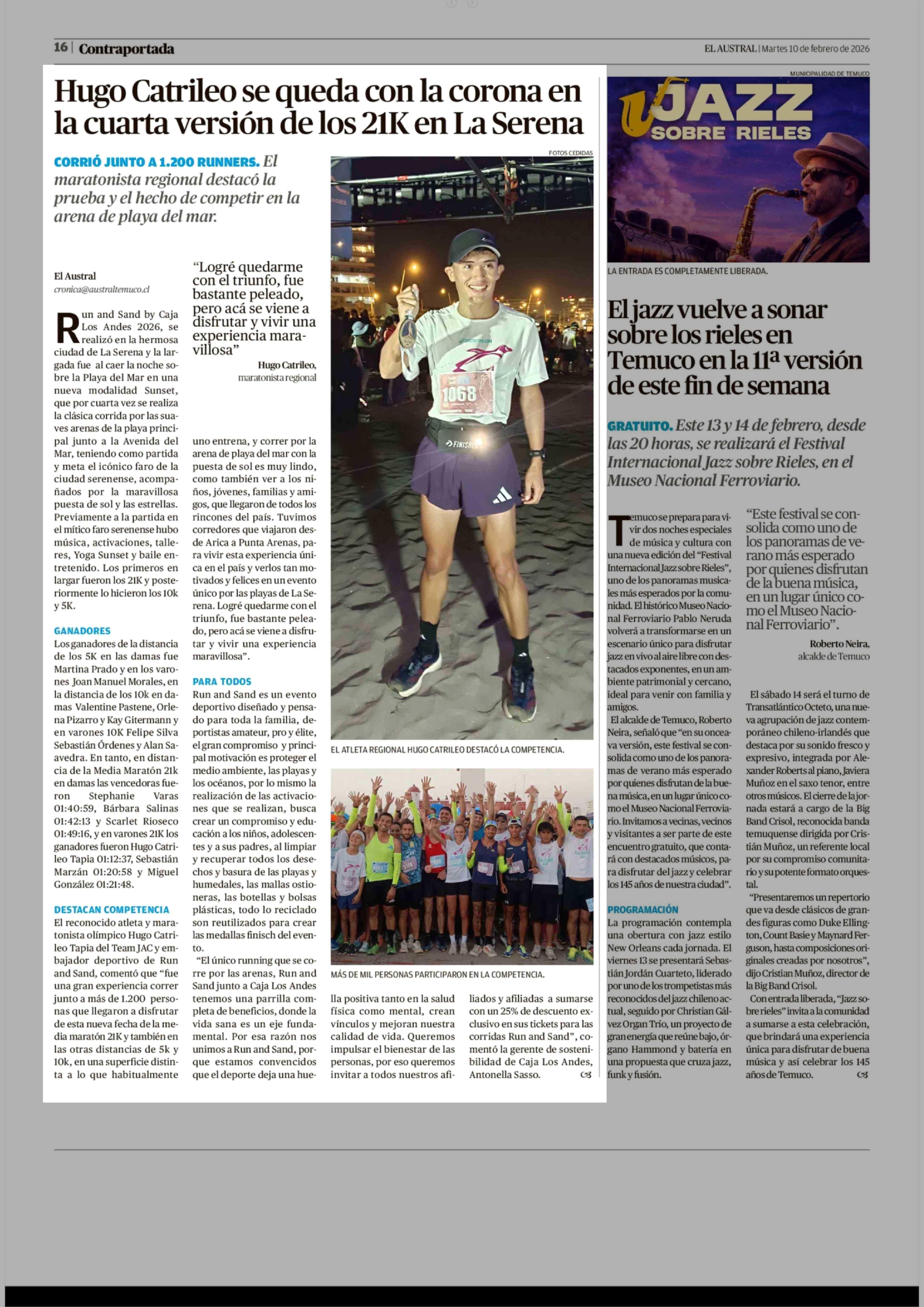 Hugo Catrileo se queda con la corona en la cuarta versión de los 21K en La Serena 10-02-2026 El Austral de la Araucanía |