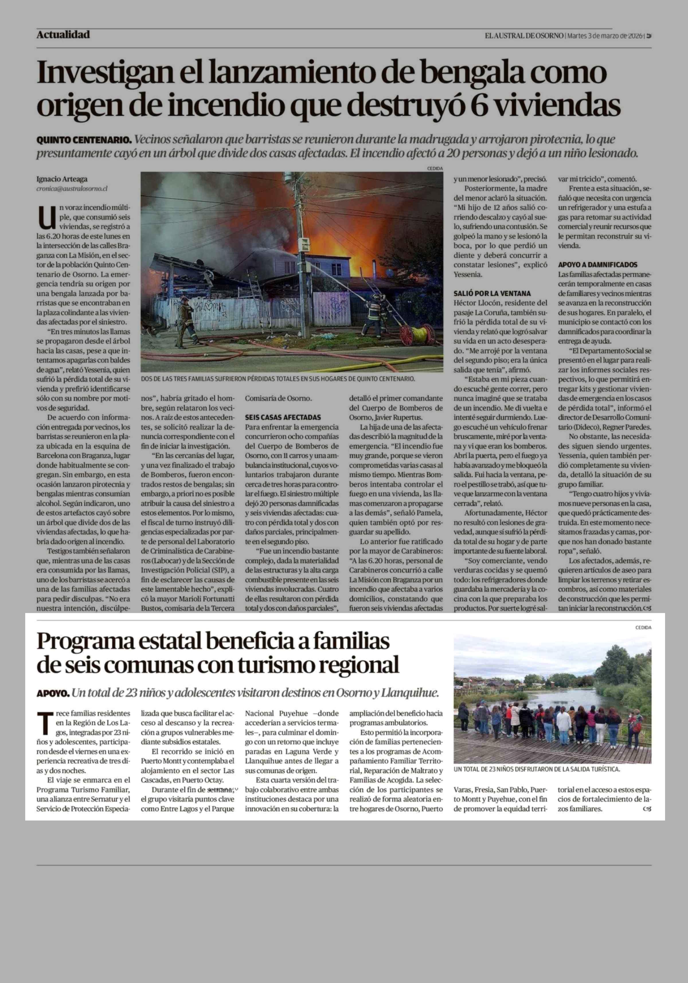 Programa estatal beneficia a familias de seis comunas con turismo regional 03-03-2026 El Austral de Osorno |