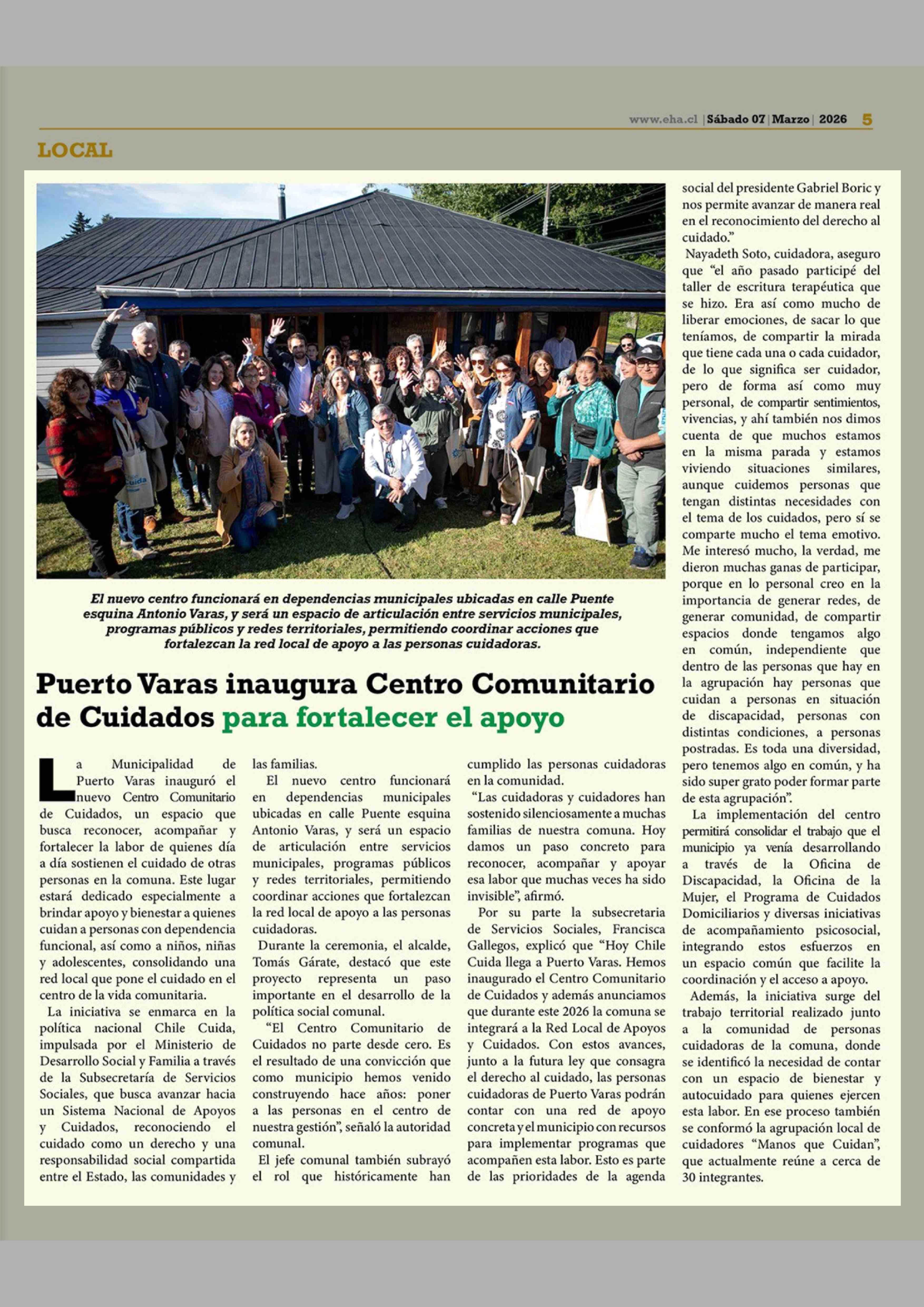 Puerto Varas inaugura Centro Comunitario de Cuidados para fortalecer el apoyo 07-03-2026 El Heraldo Austral |