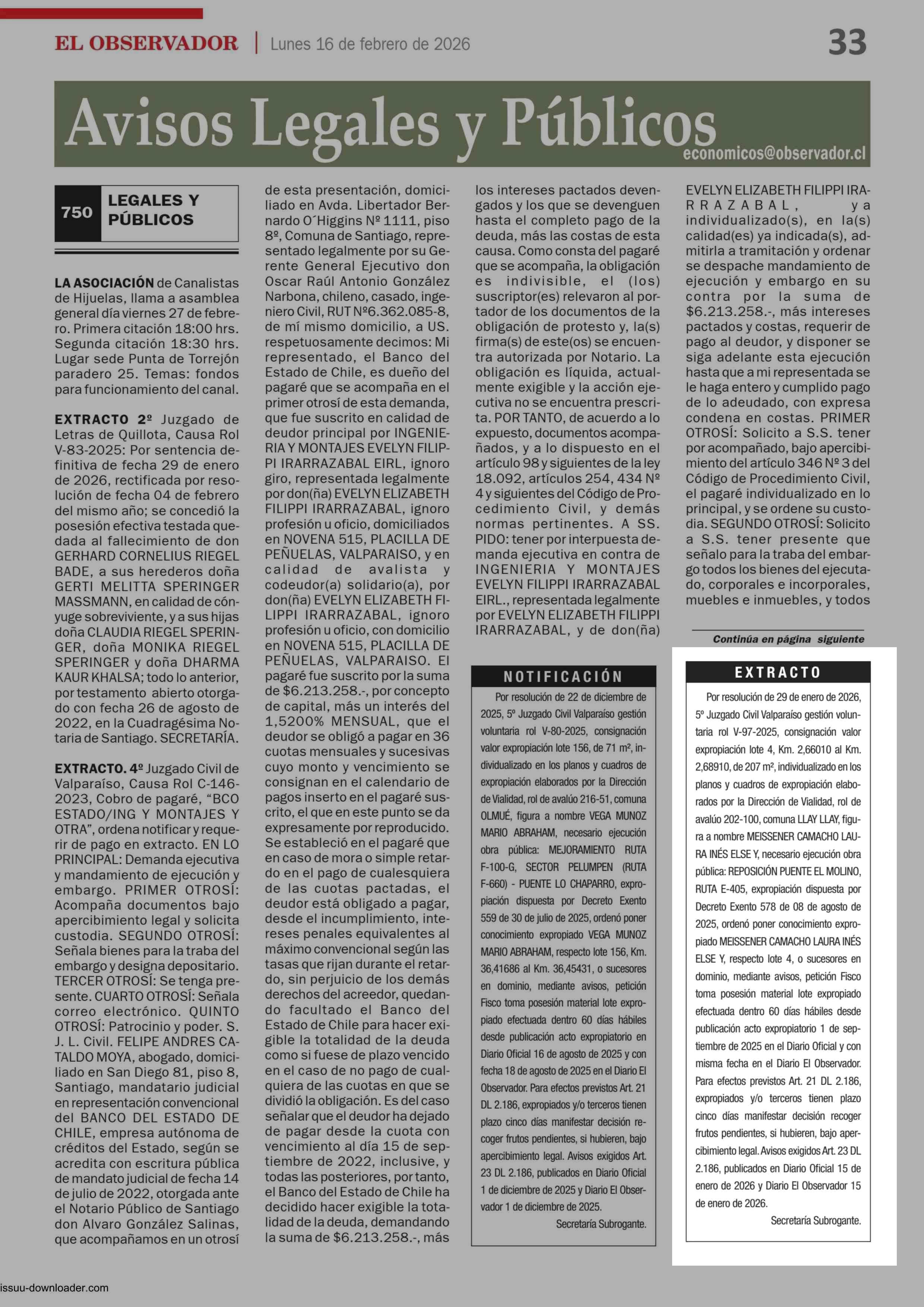 EXTRACTOS: EXTRACTO 16-02-2026 El Observador Vespertino |