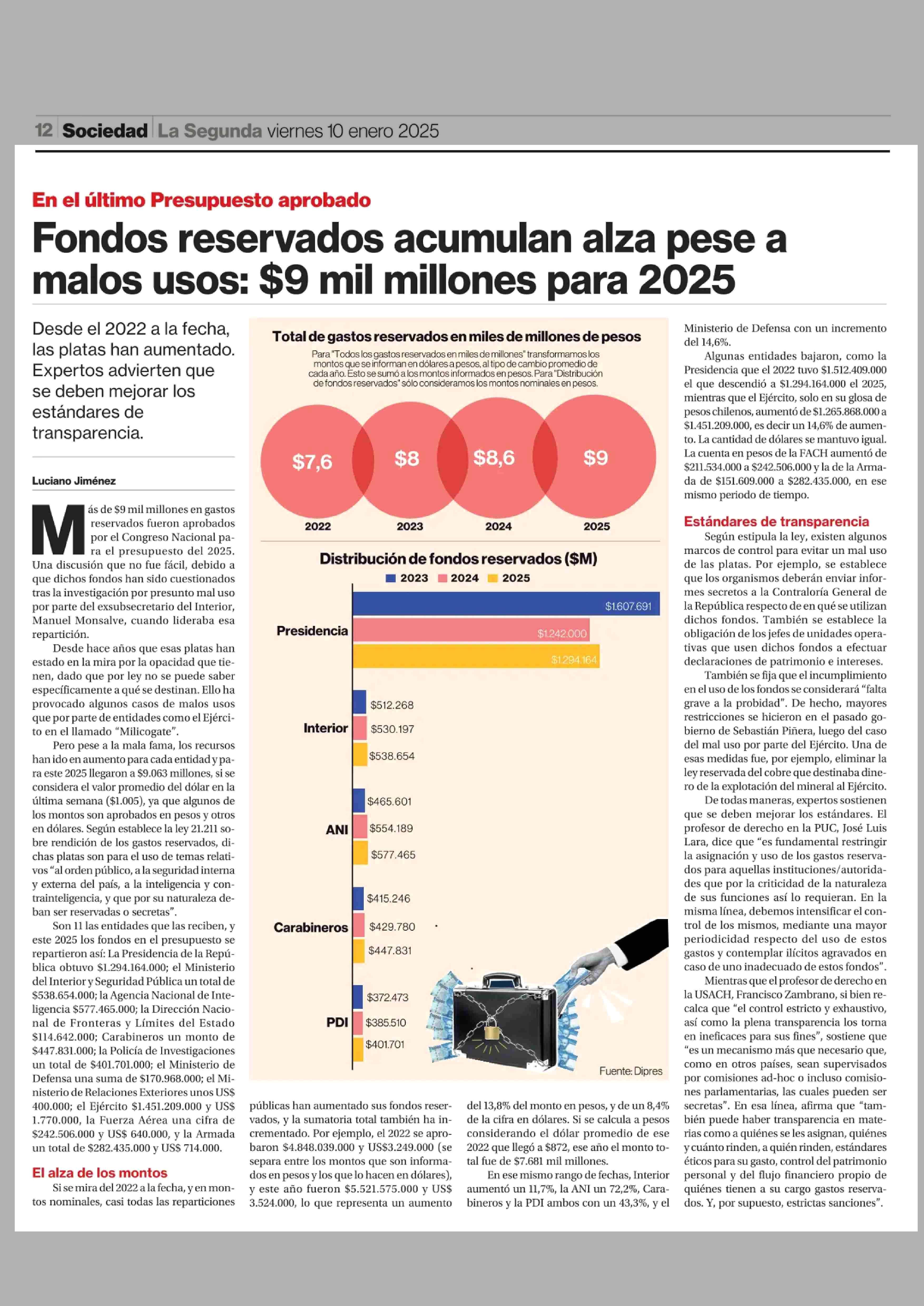 | Título: | Fondos reservados acumulan alza pese a malos usos: $9 mil millones para 2025 |