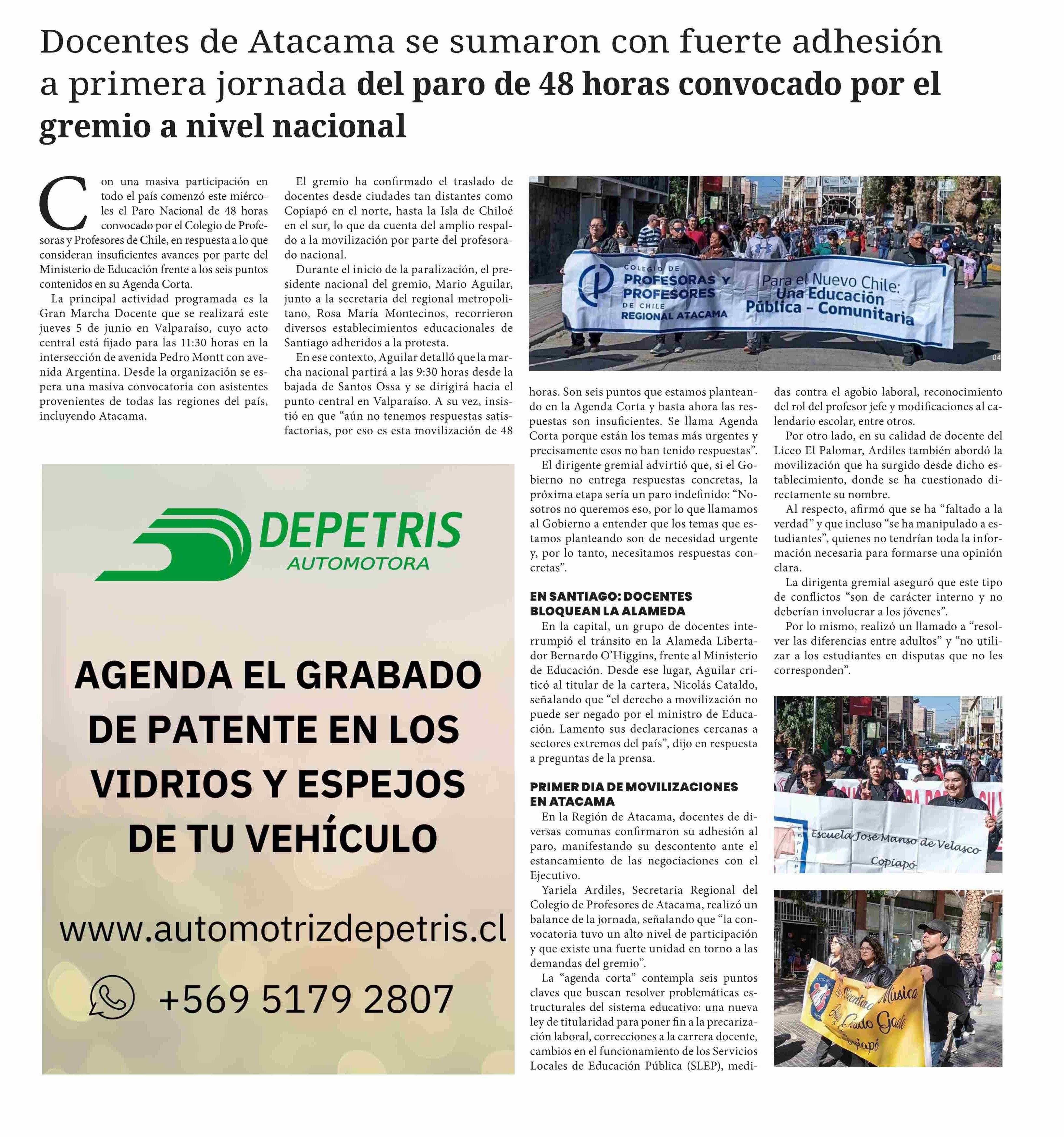 | Título: | Docentes de Atacama se sumaron con fuerte adhesión a primera jornada del paro de 48 horas convocado por el gremio a nivel nacional |