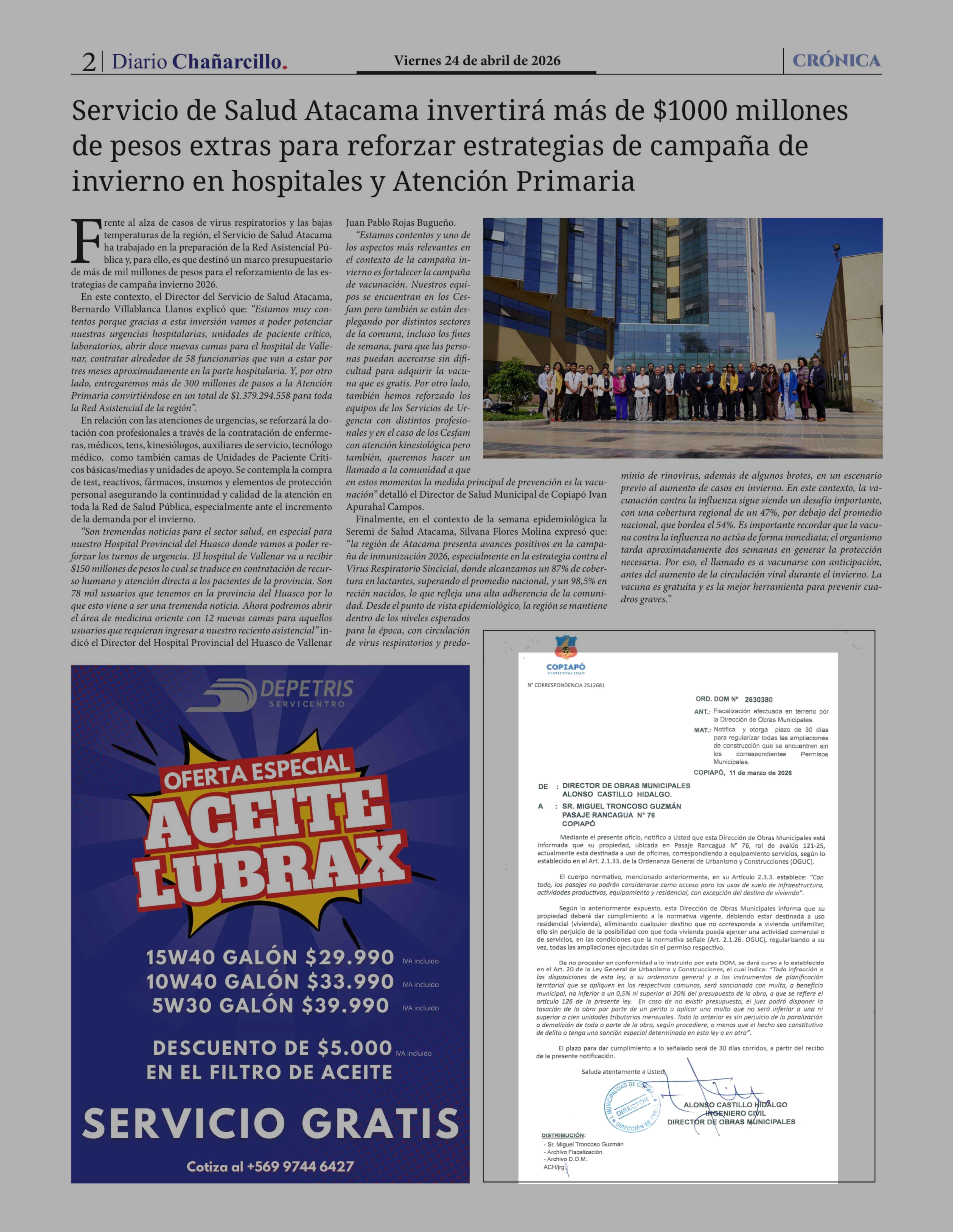 COPIAPÓ MUNICIPALIDAD 24-04-2026 Diario Chañarcillo |