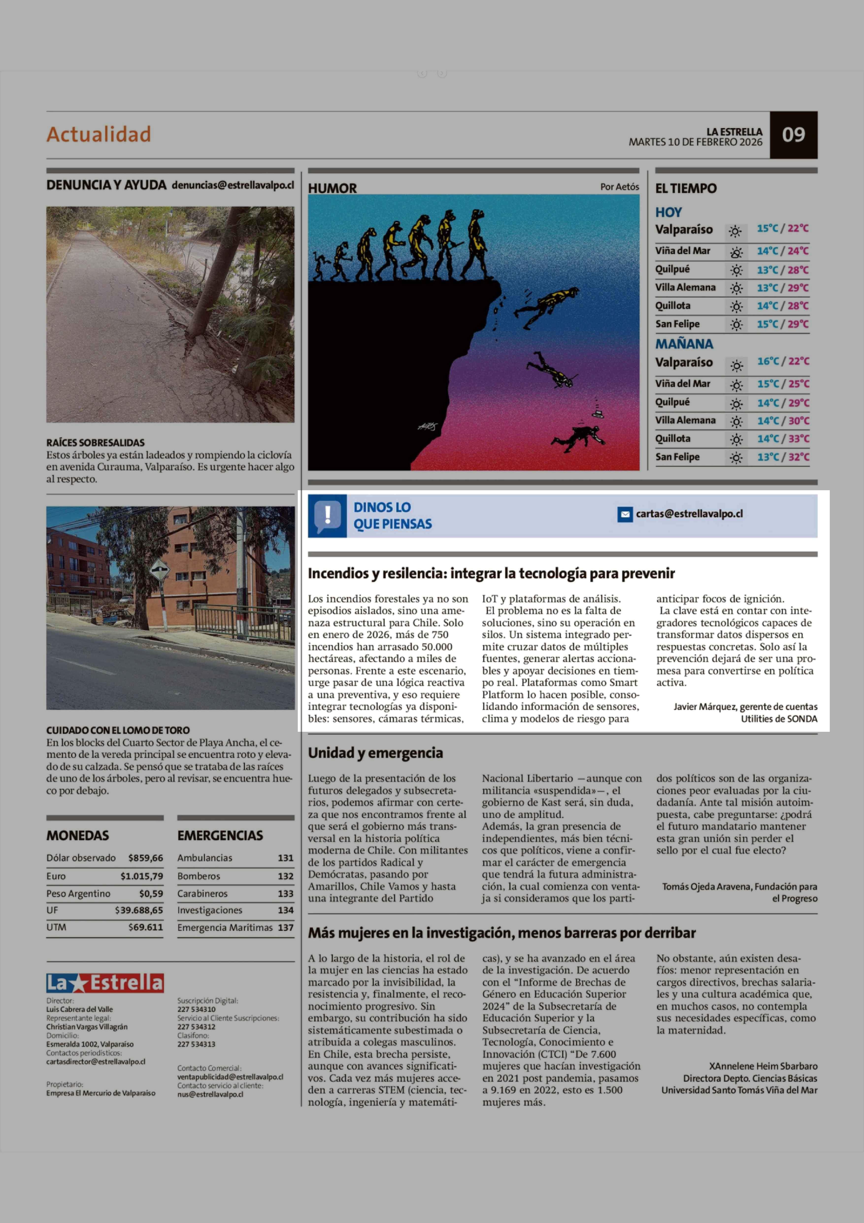 Cartas: Incendios y resilencia: integrar la tecnología para prevenir 10-02-2026 La Estrella de Valparaíso |