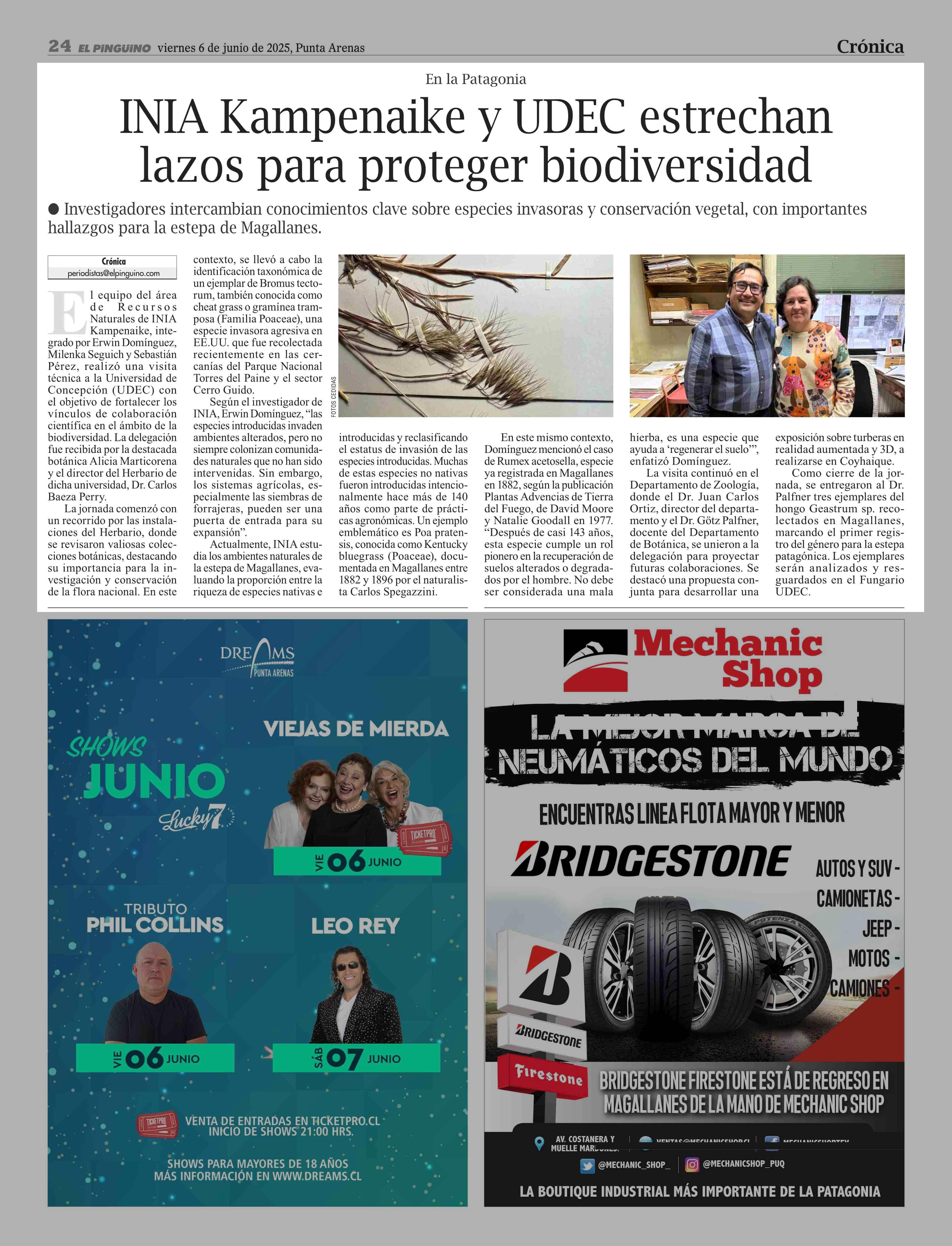 INIA Kampenaike y UDEC estrechan lazos para proteger biodiversidad 06-06-2025 El Pingüino |