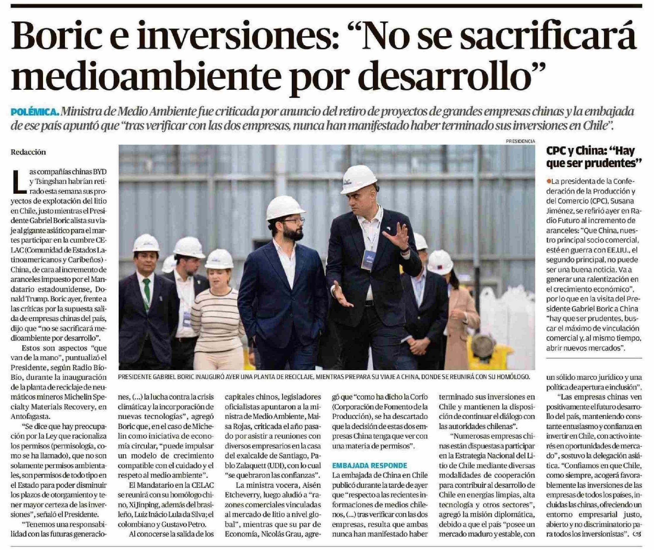 Boric e inversiones: “No se sacrificará medioambiente por desarrollo” 09-05-2025 El Mercurio de Valparaíso |