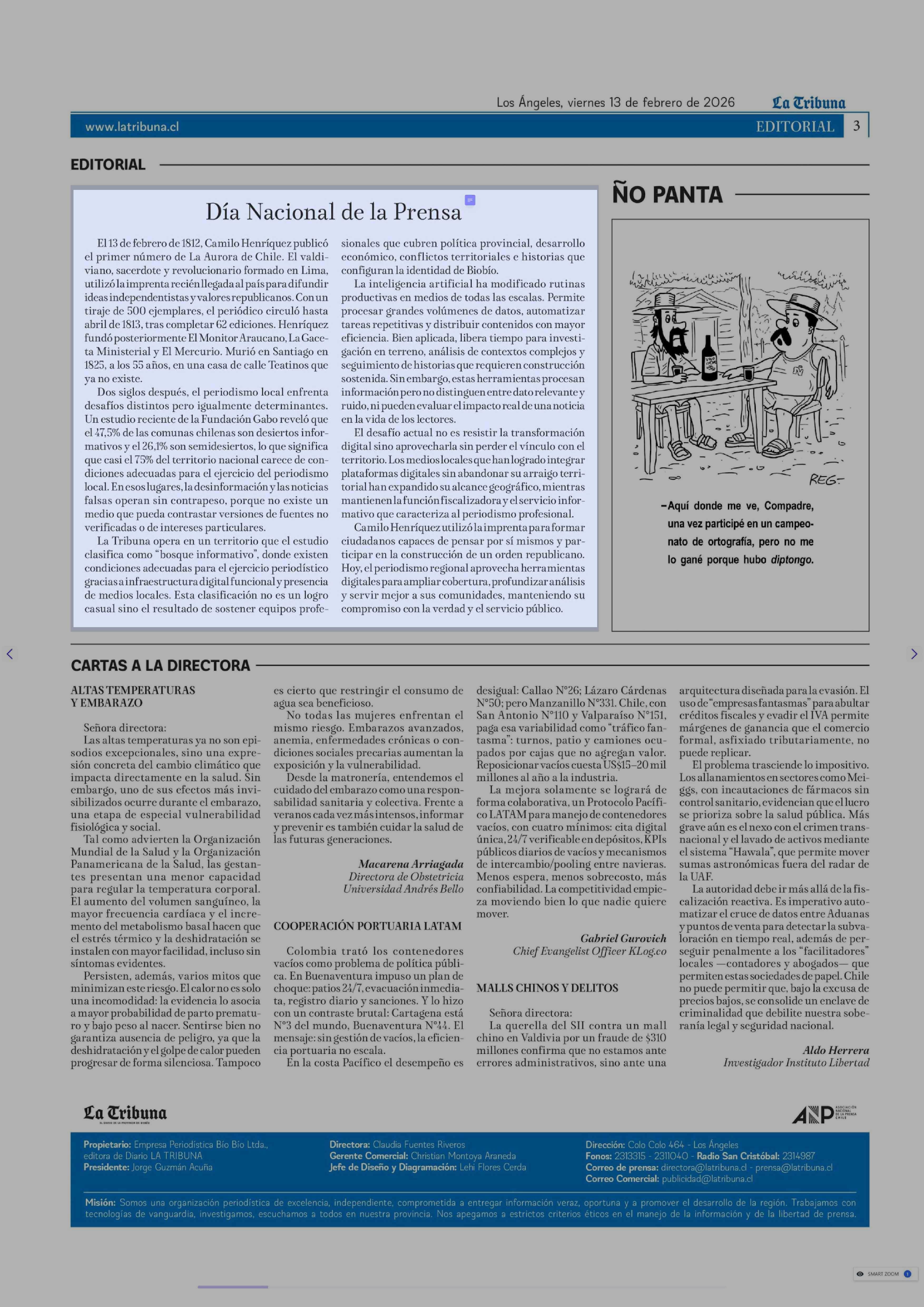 Fecha: 13-02-2026 Sector: Editorial Región: Región del Bío-Bío
