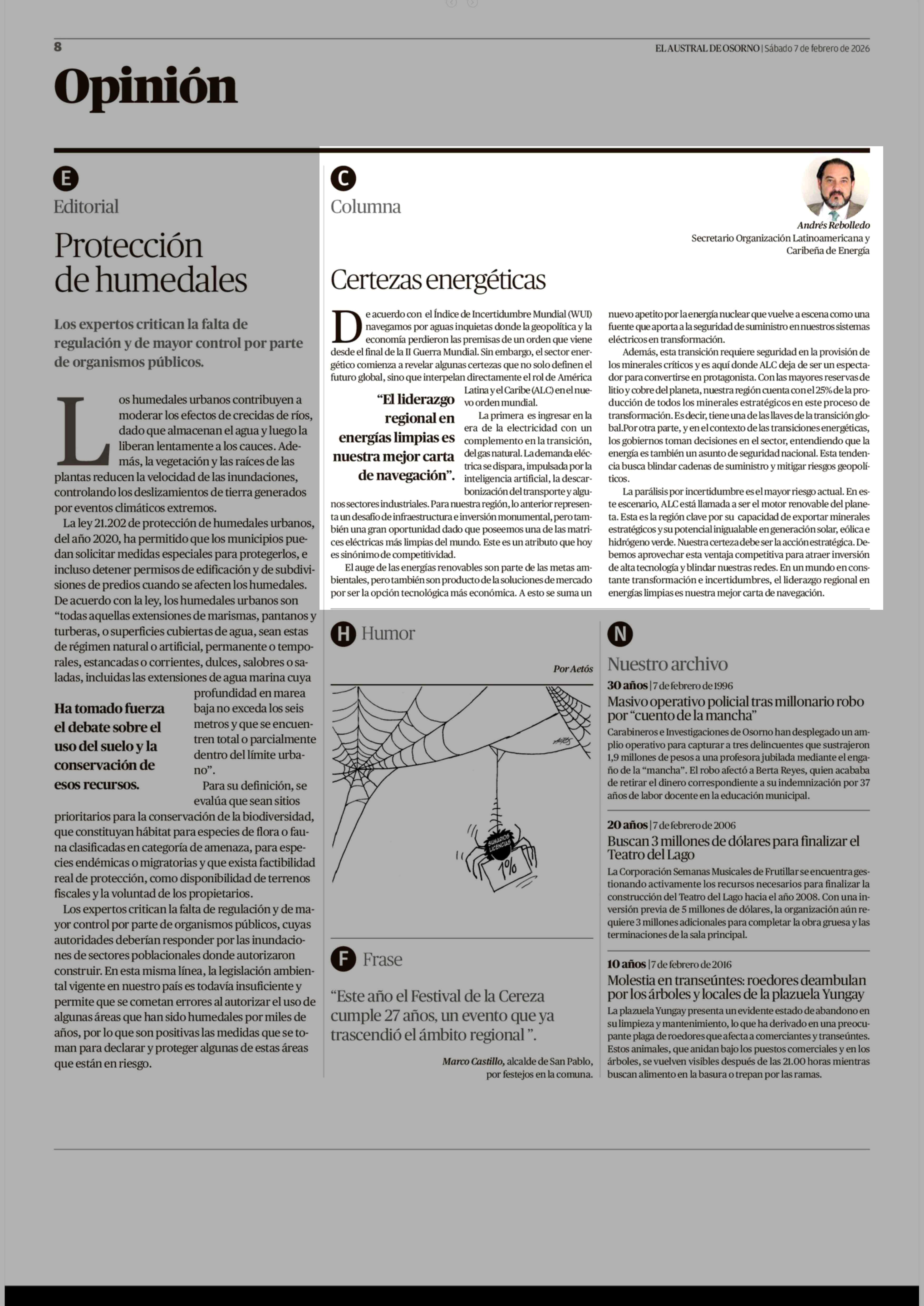 Fecha: 07-02-2026 Sector: Columnas de Opinión Región: Región de Los Lagos