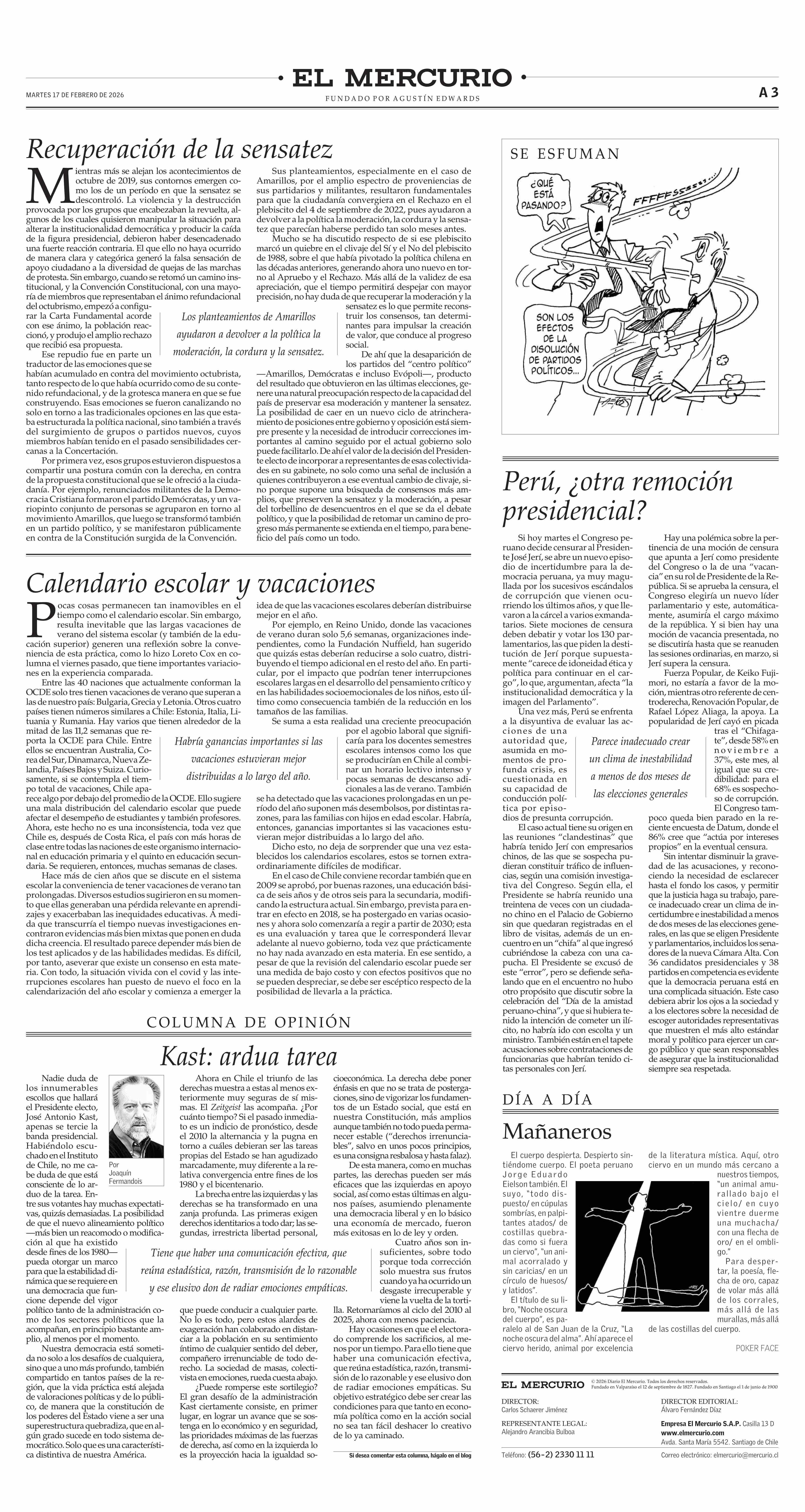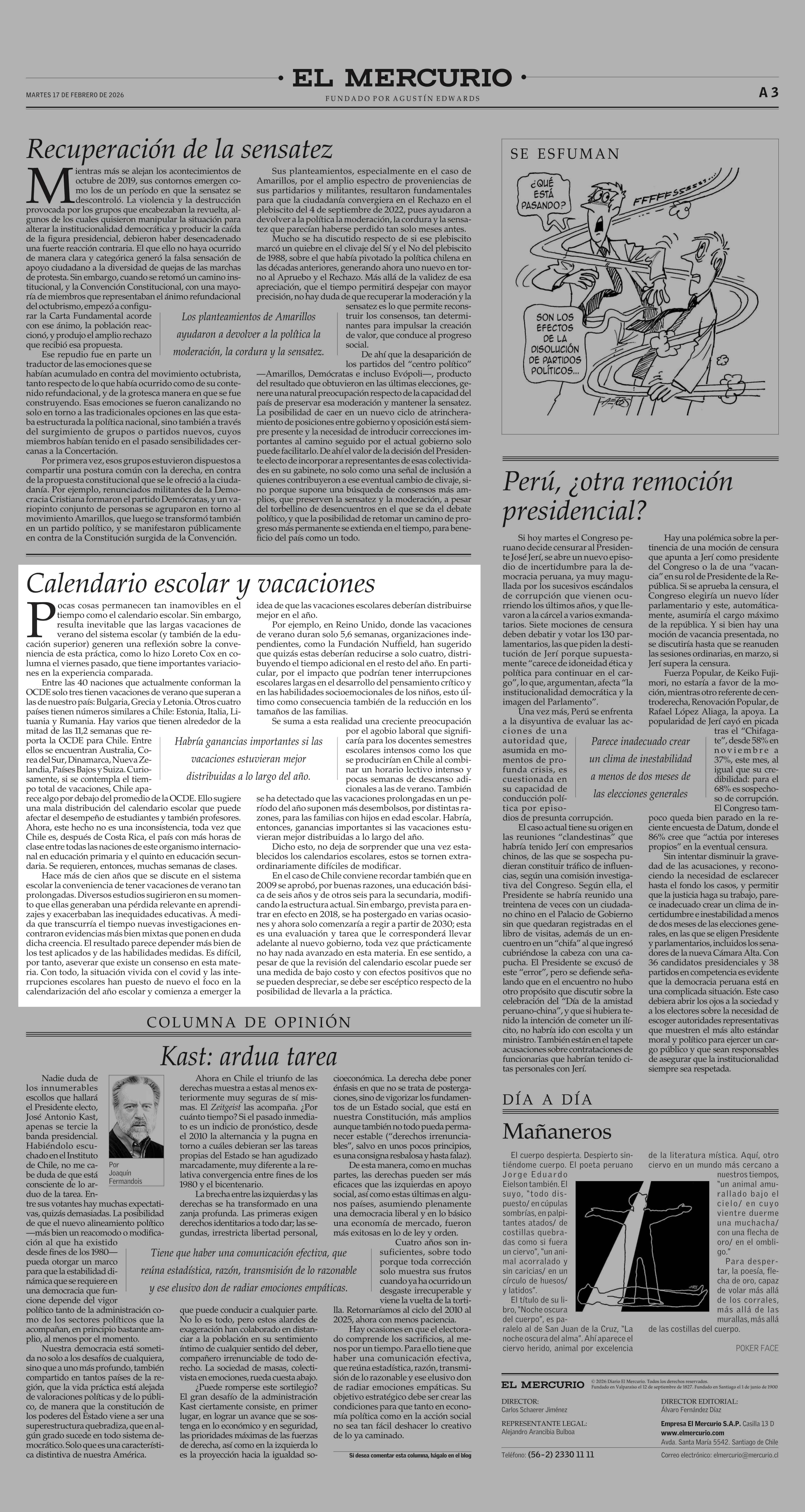 Editorial: Calendario escolar y vacaciones 17-02-2026 El Mercurio |