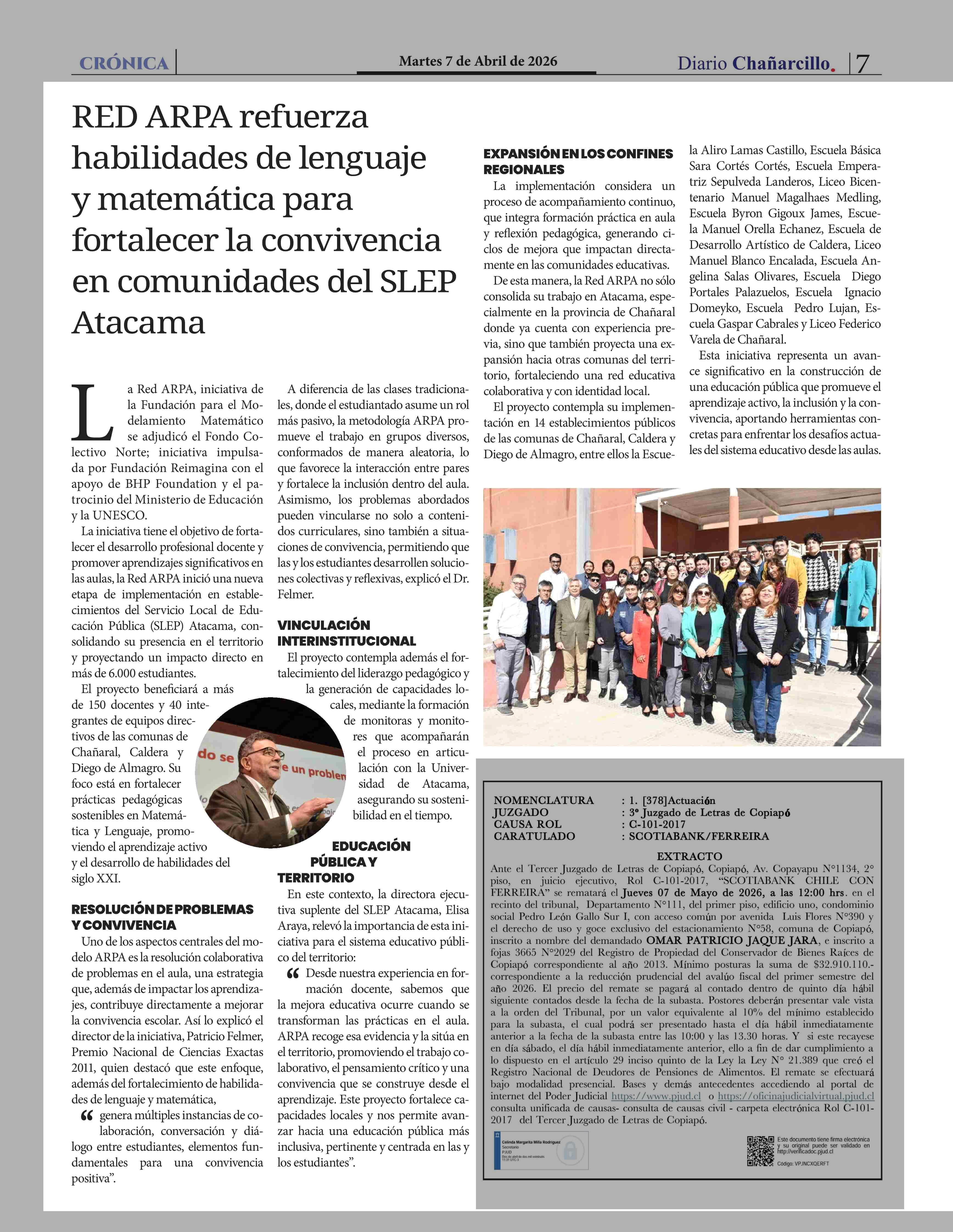 RED ARPA refuerza habilidades de lenguaje y matemática para fortalecer la convivencia en comunidades del SLEP Atacama 07-04-2026 Diario Chañarcillo |