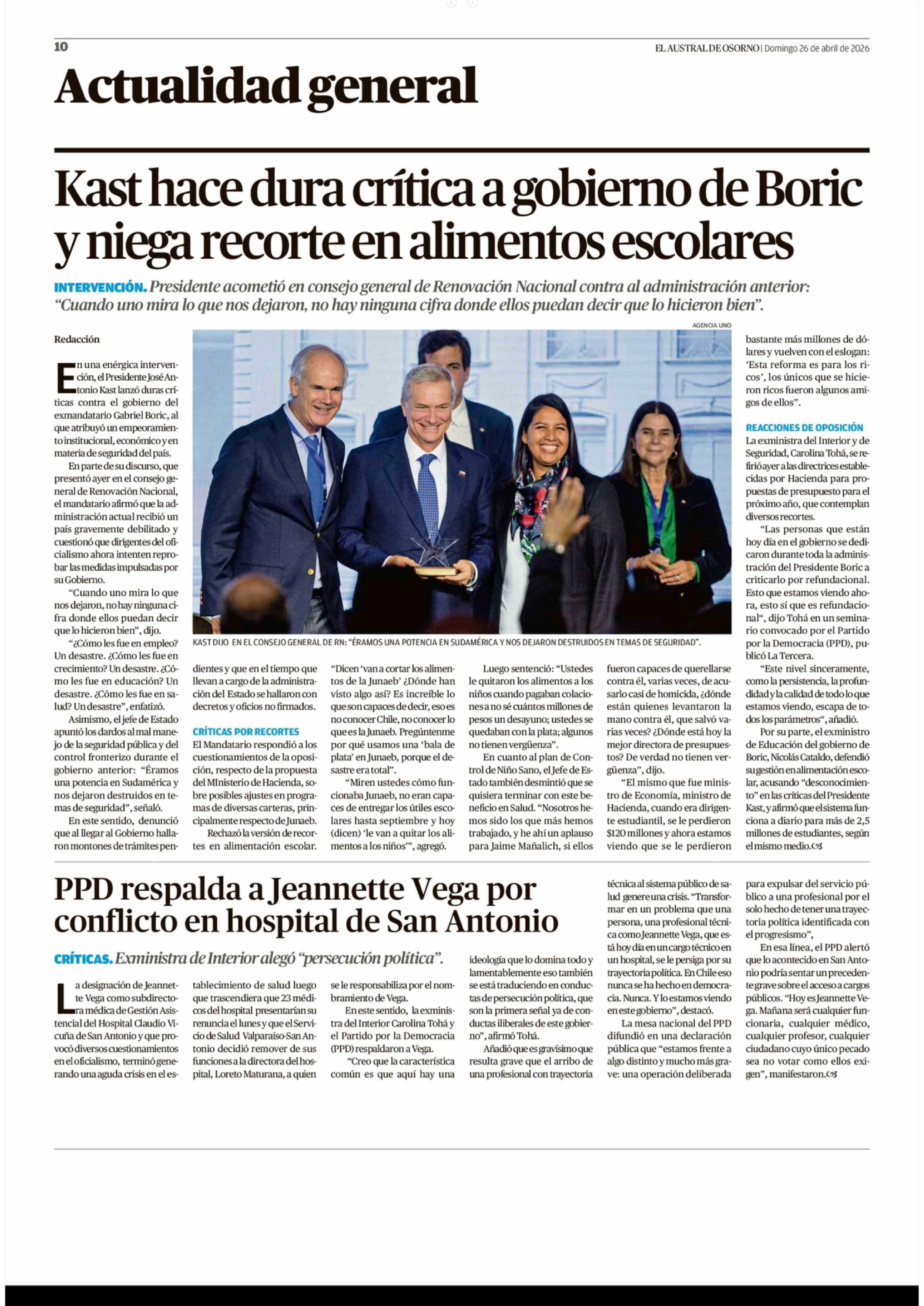 Fuente: El Austral de Osorno (El Austral de Osorno) Página(s): 10