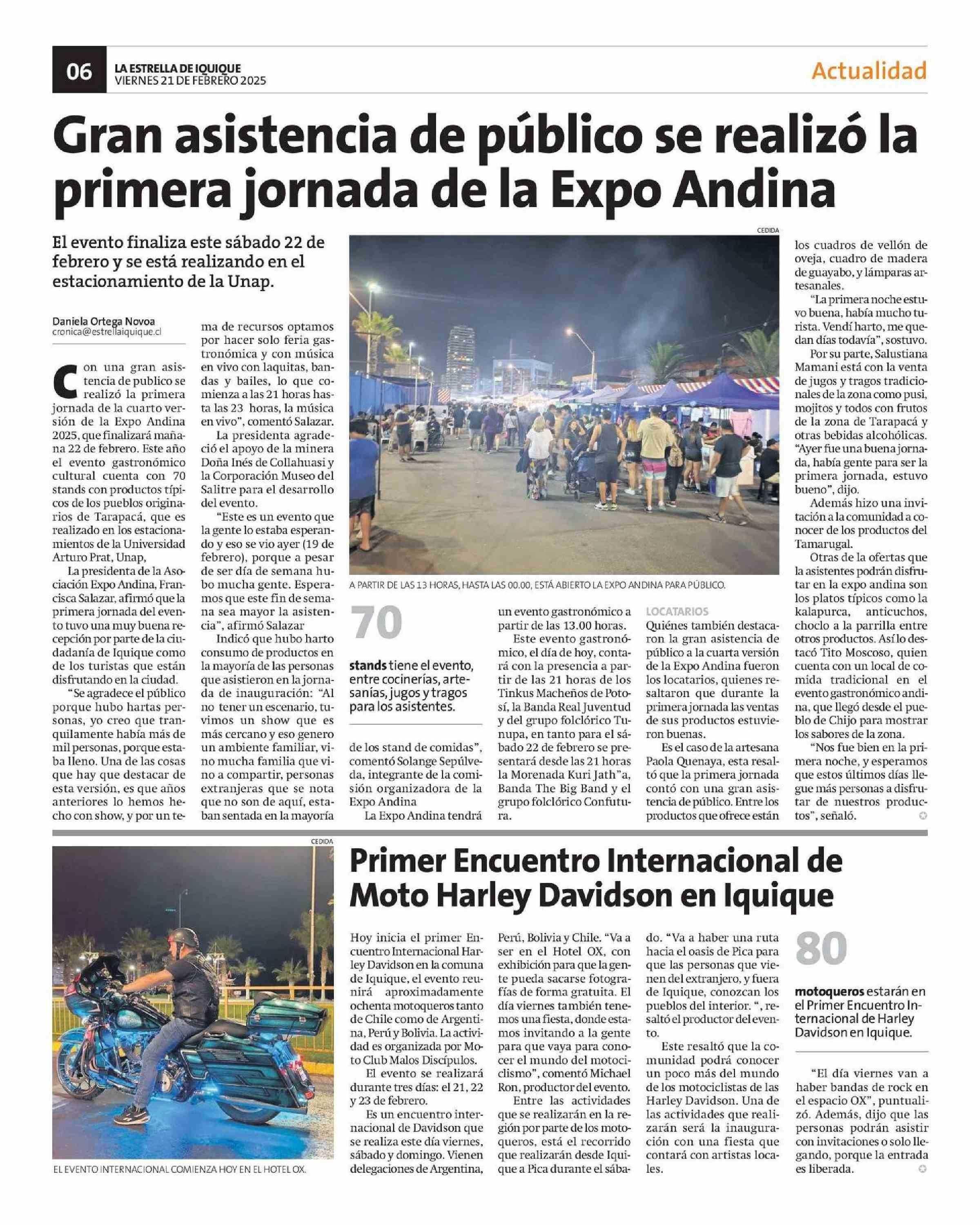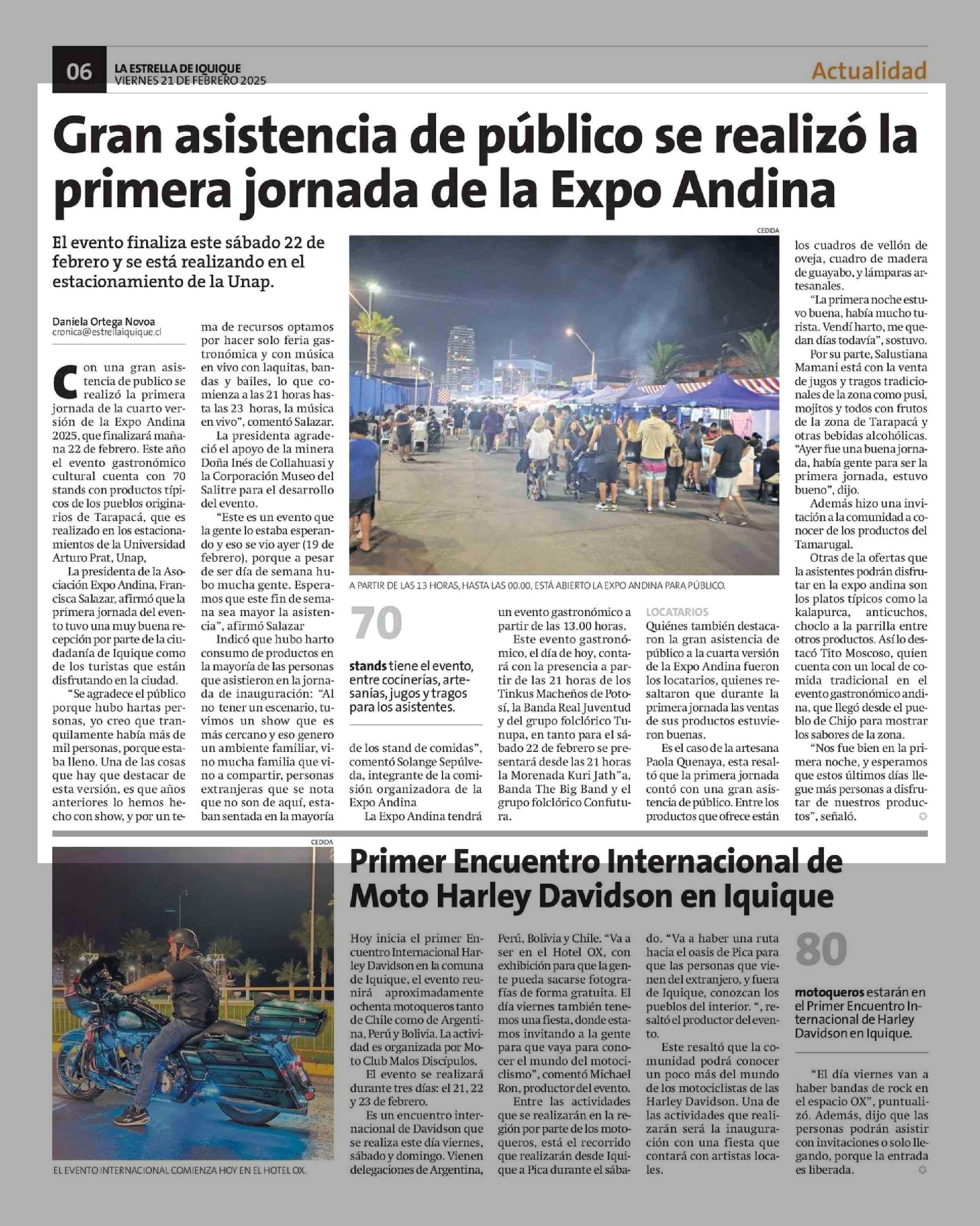 Gran asistencia de público se realizó la primera jornada de la Expo Andina 21-02-2025 La Estrella de Iquique |