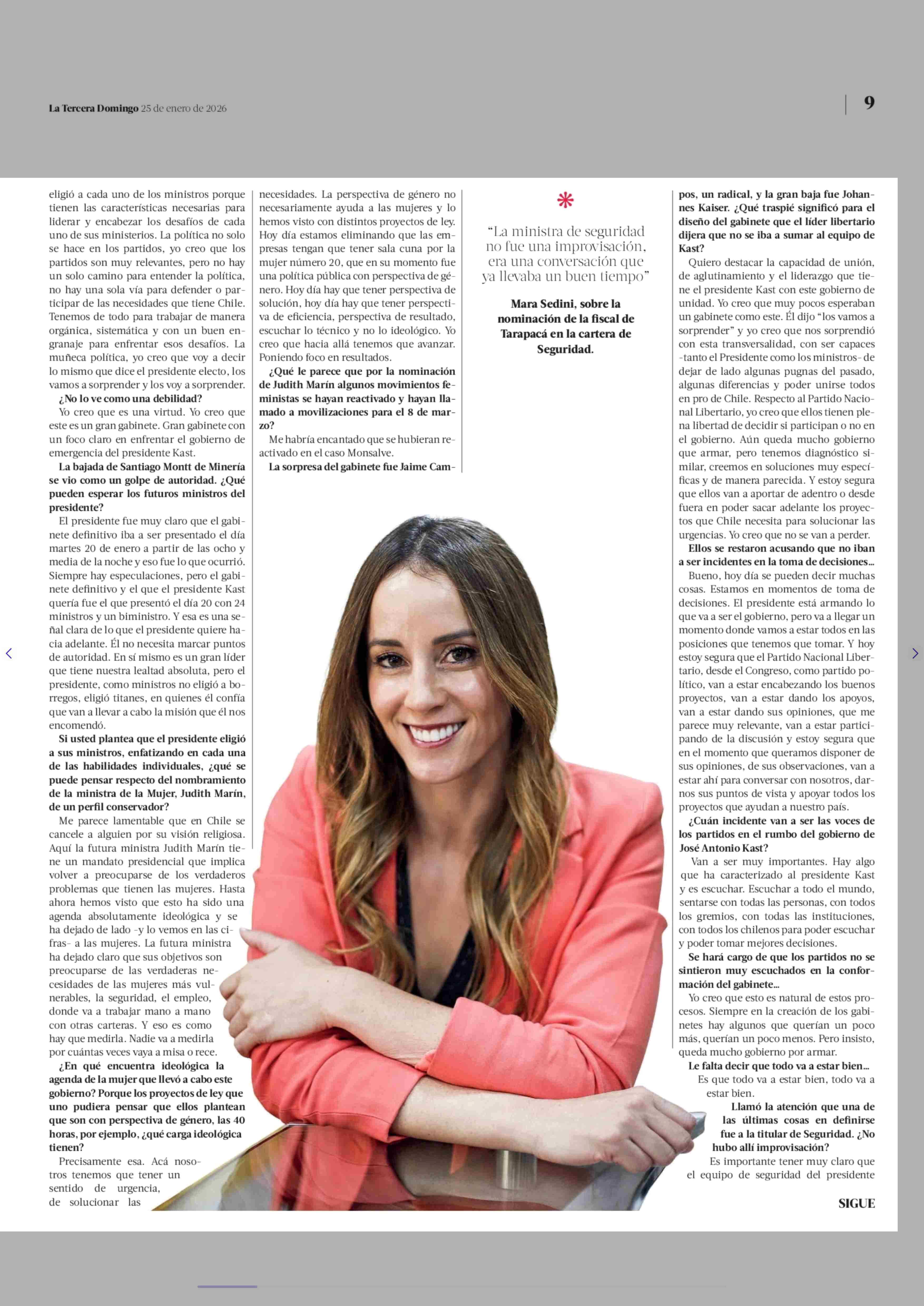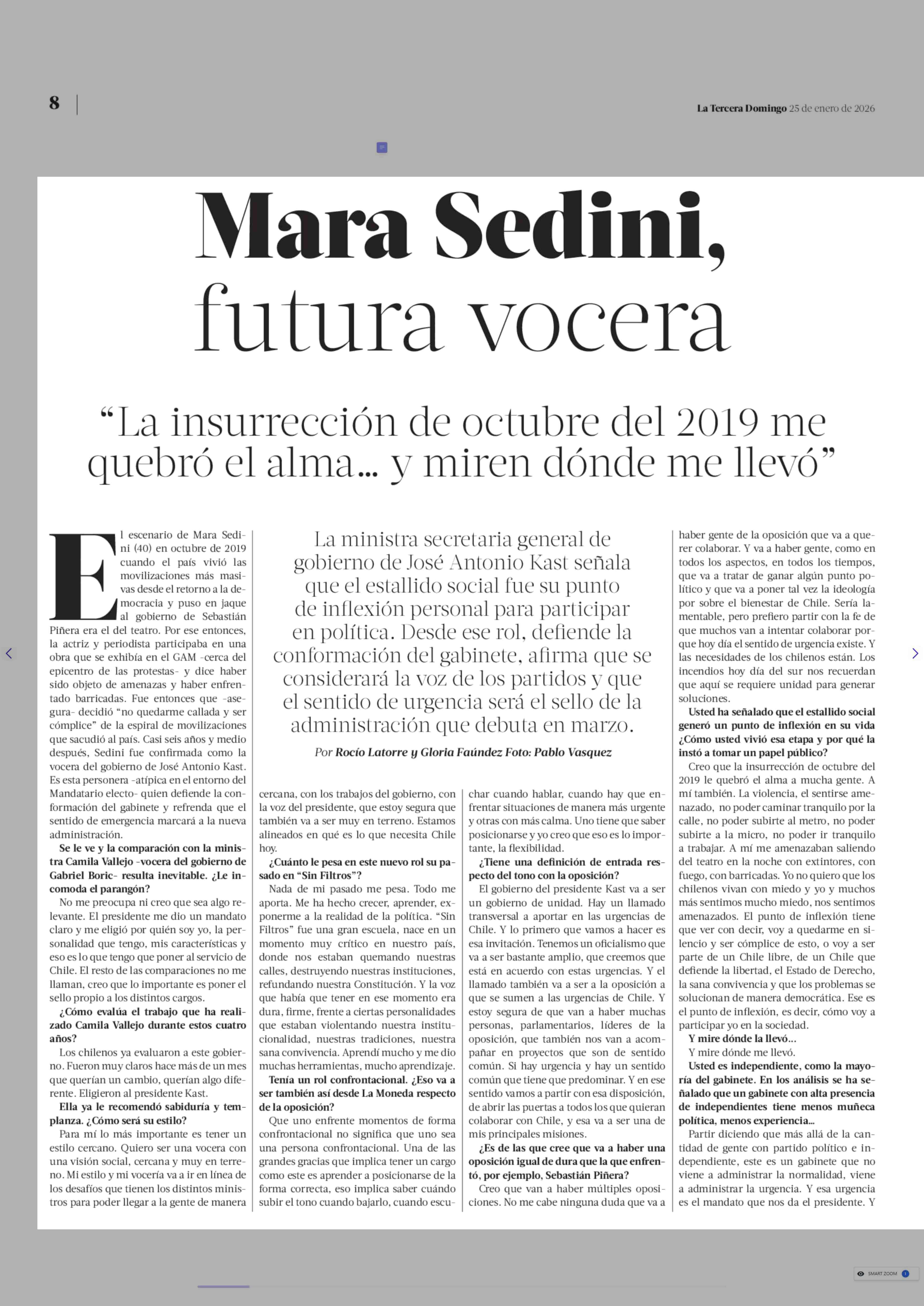 Mara Sedini, futura vocera 25-01-2026 La Tercera |