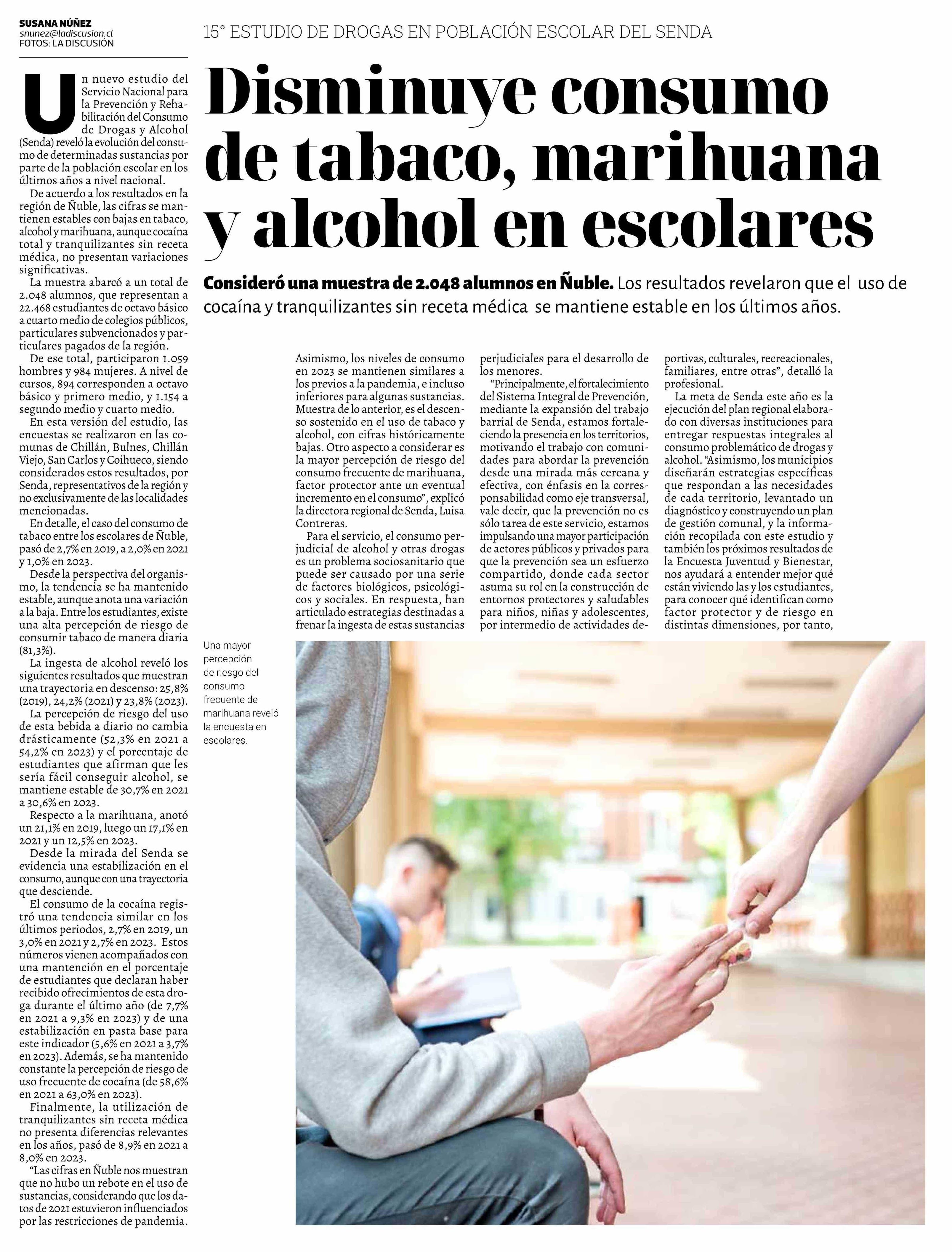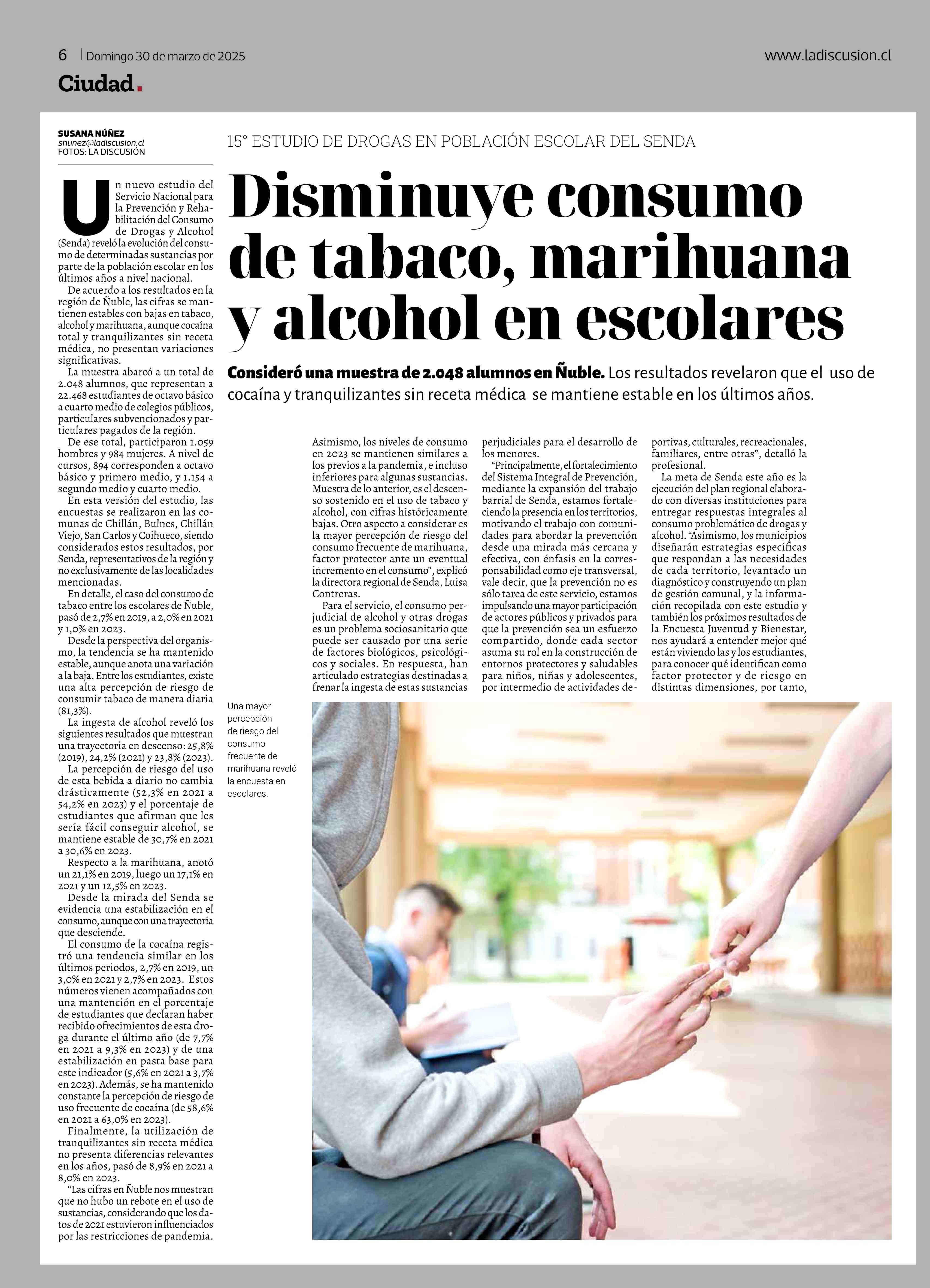 Disminuye consumo de tabaco, marihuana y alcohol en escolares 30-03-2025 La Discusión |