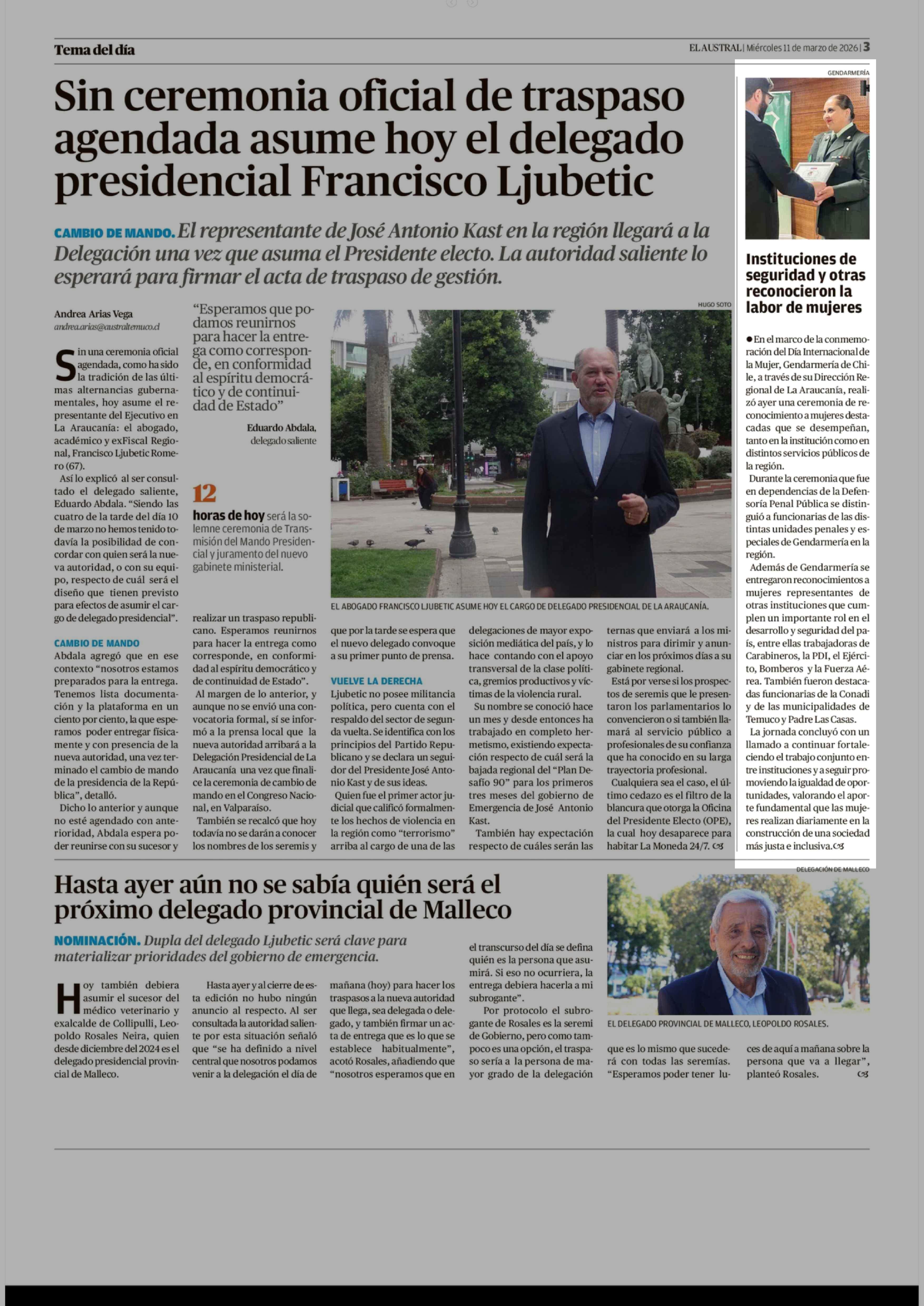 | Fecha: | 11-03-2026 | Sector: | Noticia general | Región: | Región de la Araucanía |