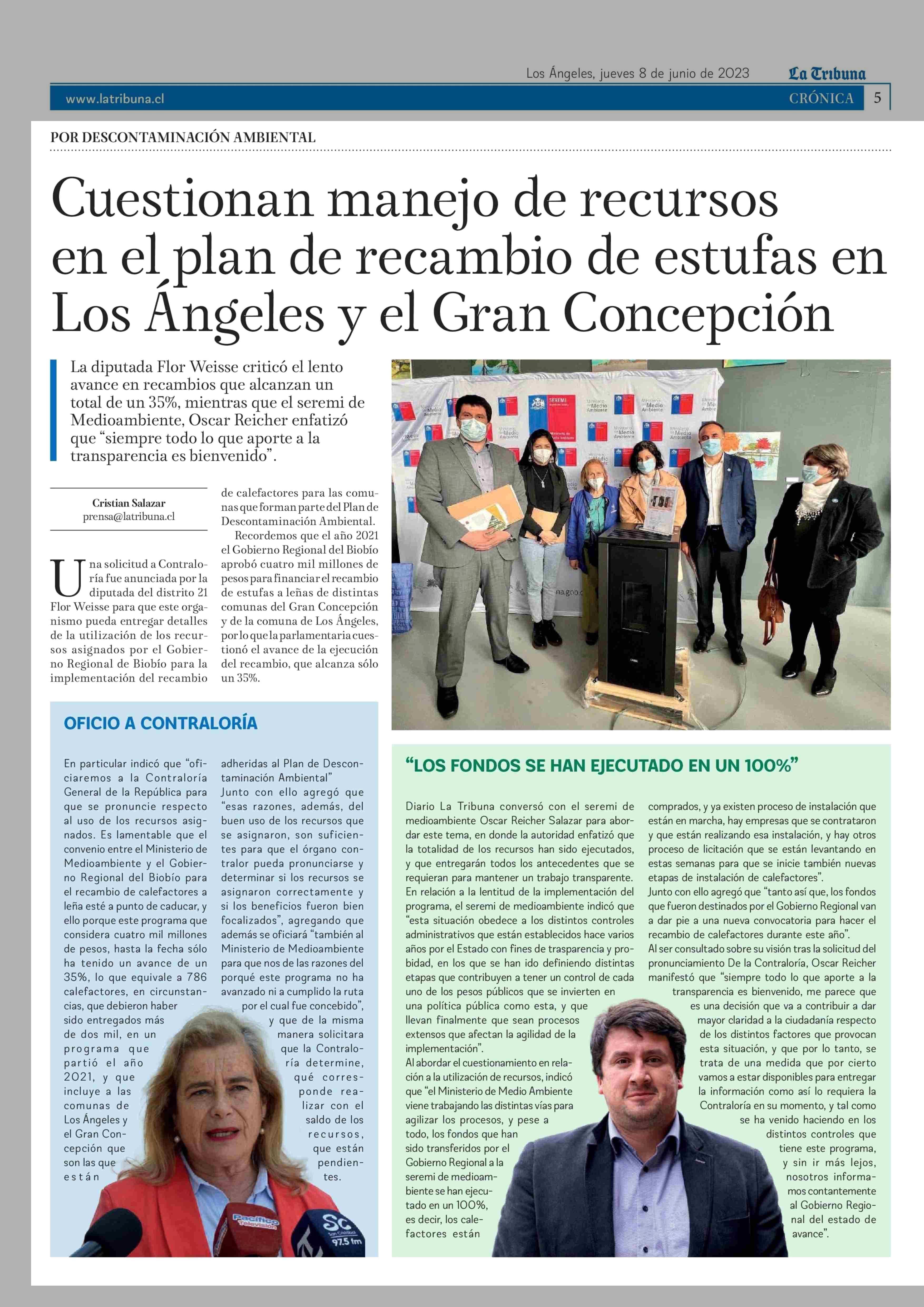 Cuestionan manejo de recursos en el plan de recambio de estufas en Los Angeles y el Gran Concepción 08-06-2023 La Tribuna |