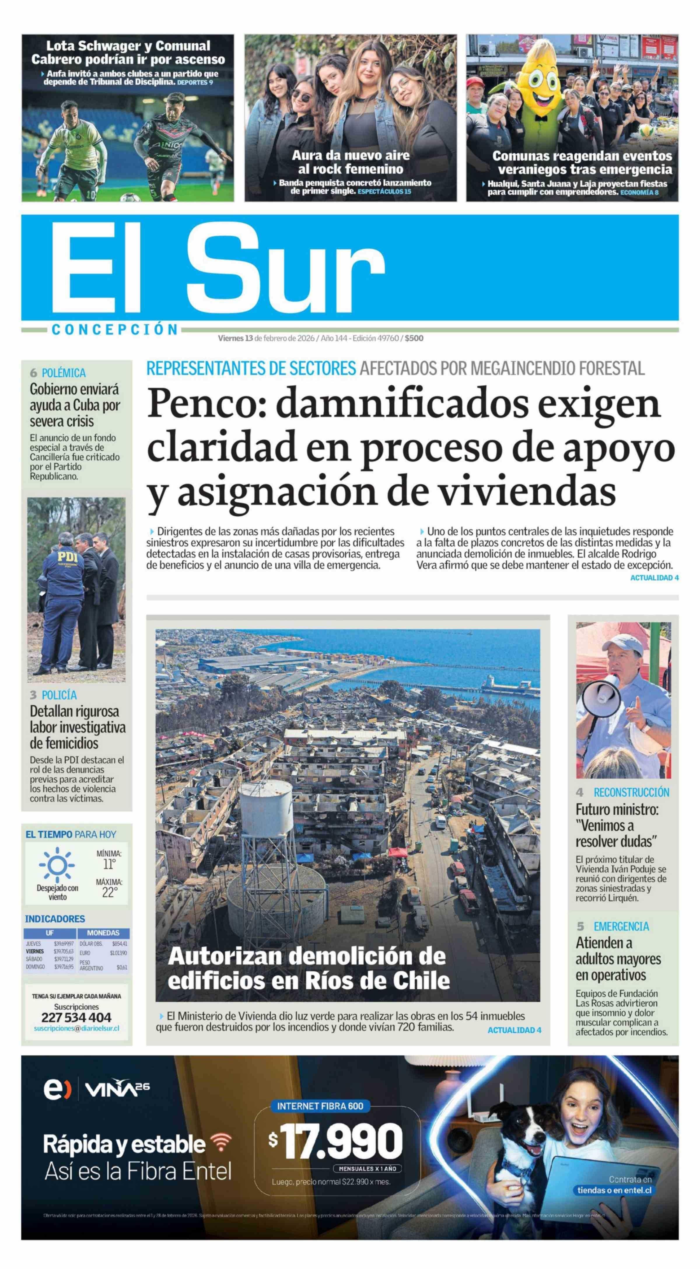 | Fecha: | 13-02-2026 | Sector: | Portada | Región: | Región del Bío-Bío |