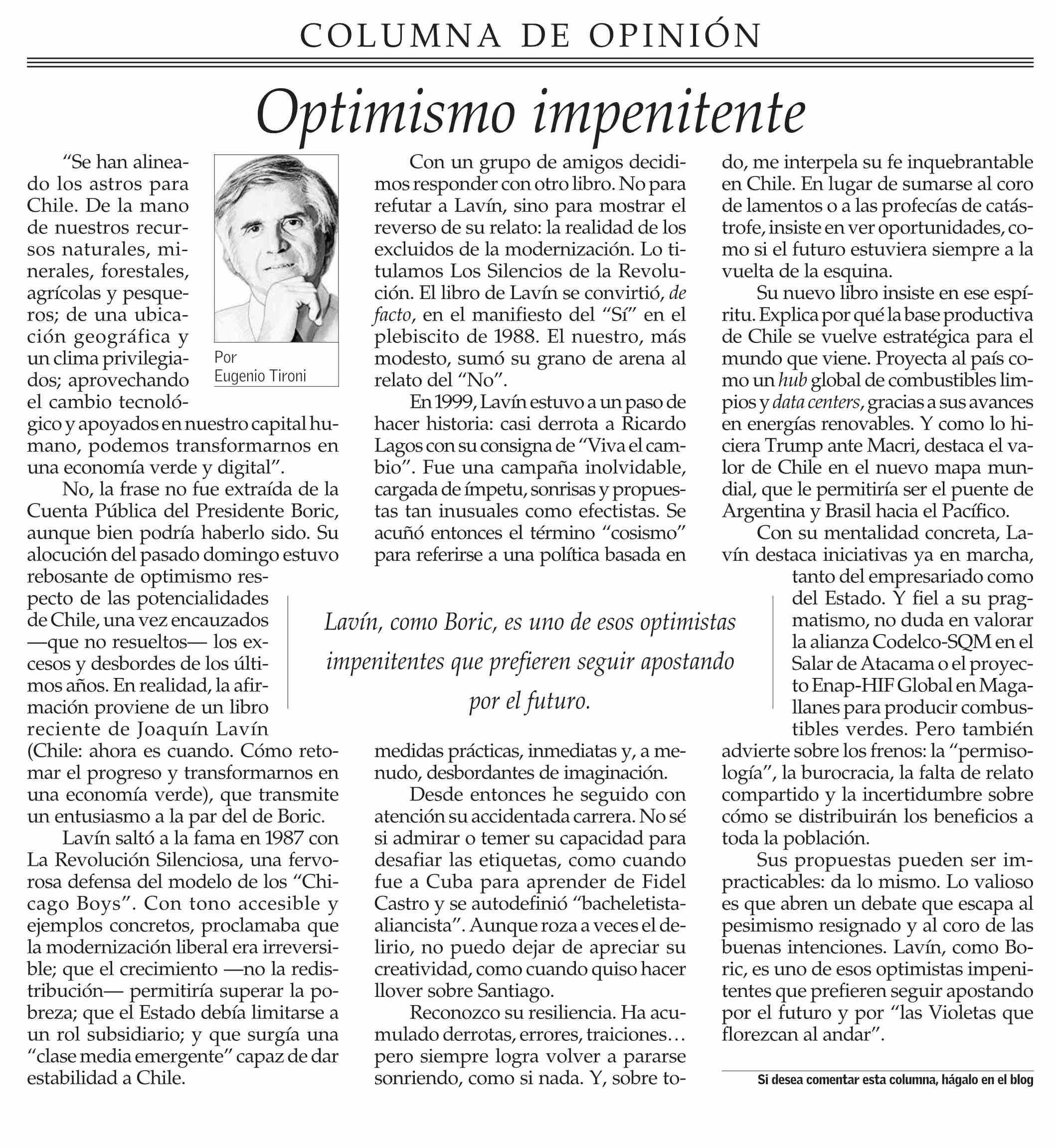 COLUMNAS DE OPINIÓN: Optimismo impenitente 03-06-2025 El Mercurio |