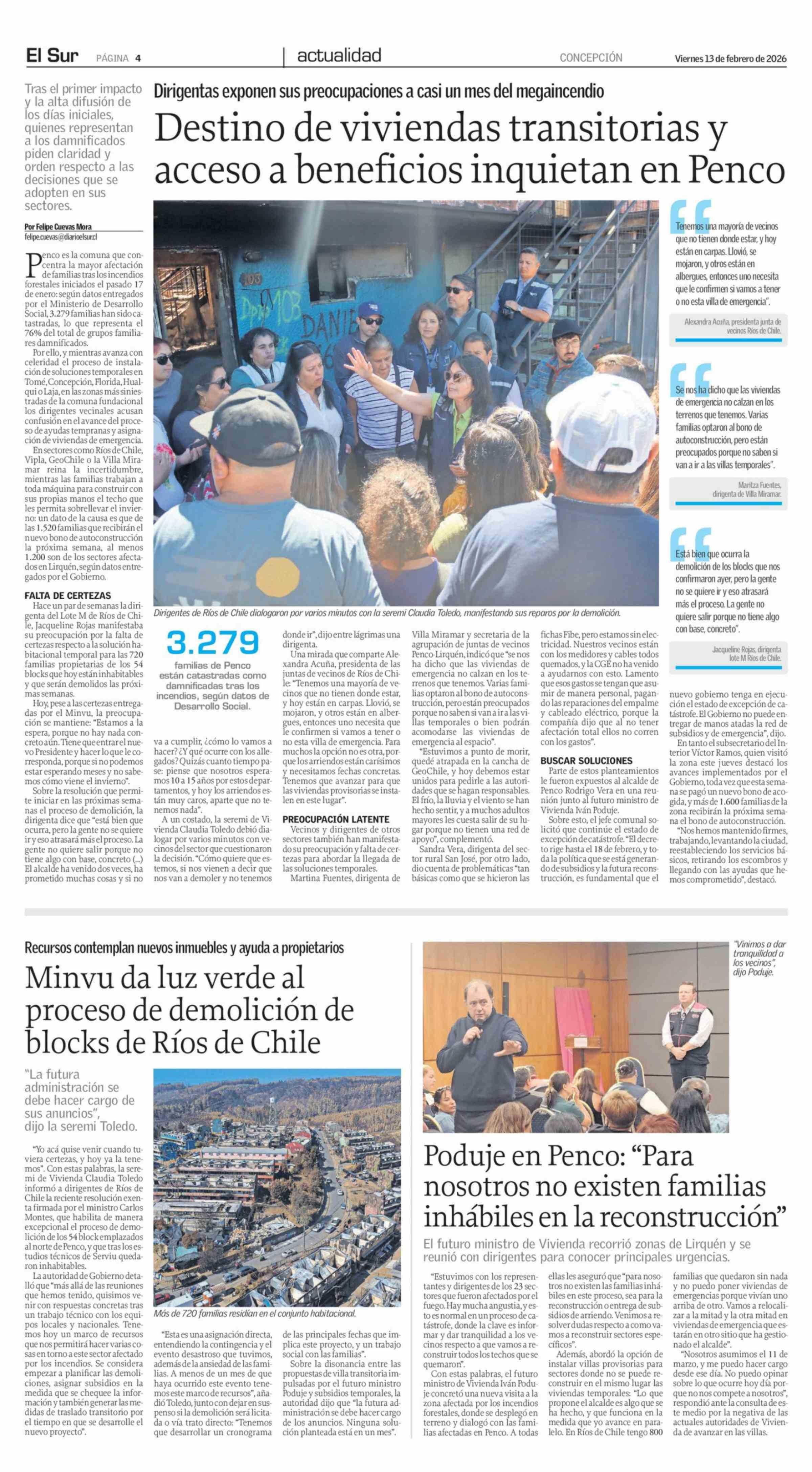 Poduje en Penco: "Para nosotros no existen familias inhábiles en la reconstrucción" 13-02-2026 El Sur |