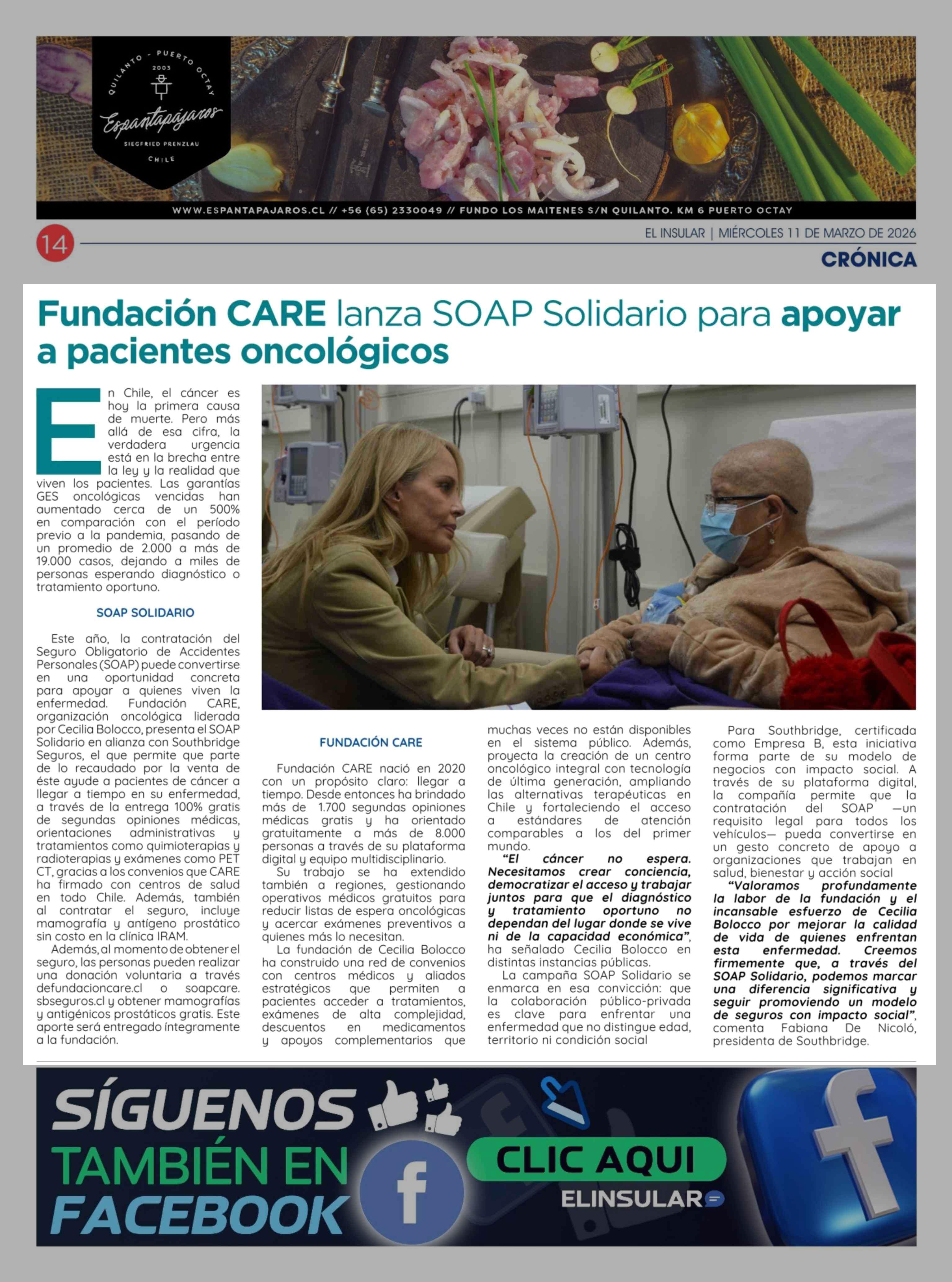 Fundación CARE lanza SOAP Solidario para apoyar a pacientes oncológicos 11-03-2026 El Insular |