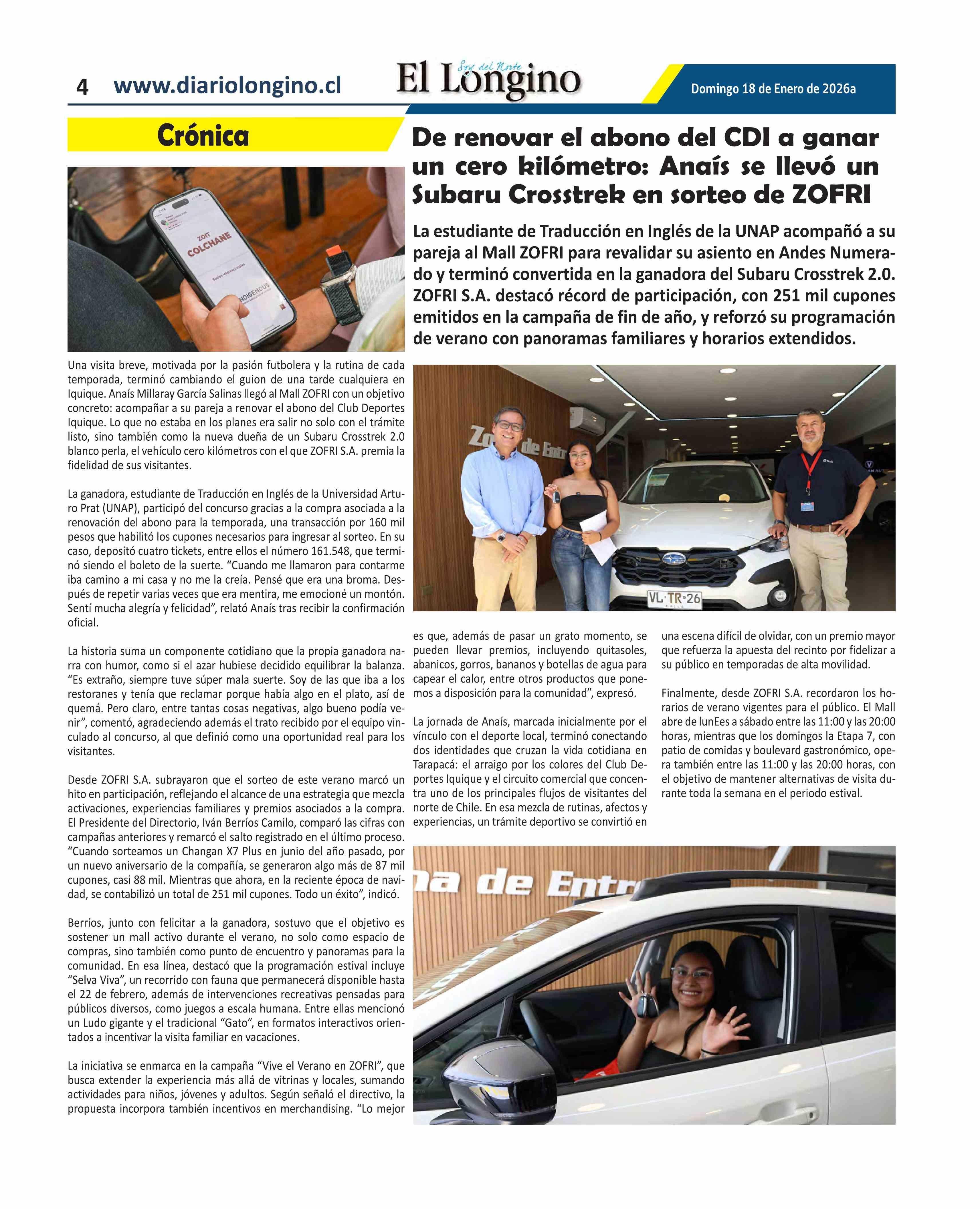 | Fecha: | 18-01-2026 | Sector: | Noticia general | Región: | Región de Tarapacá |