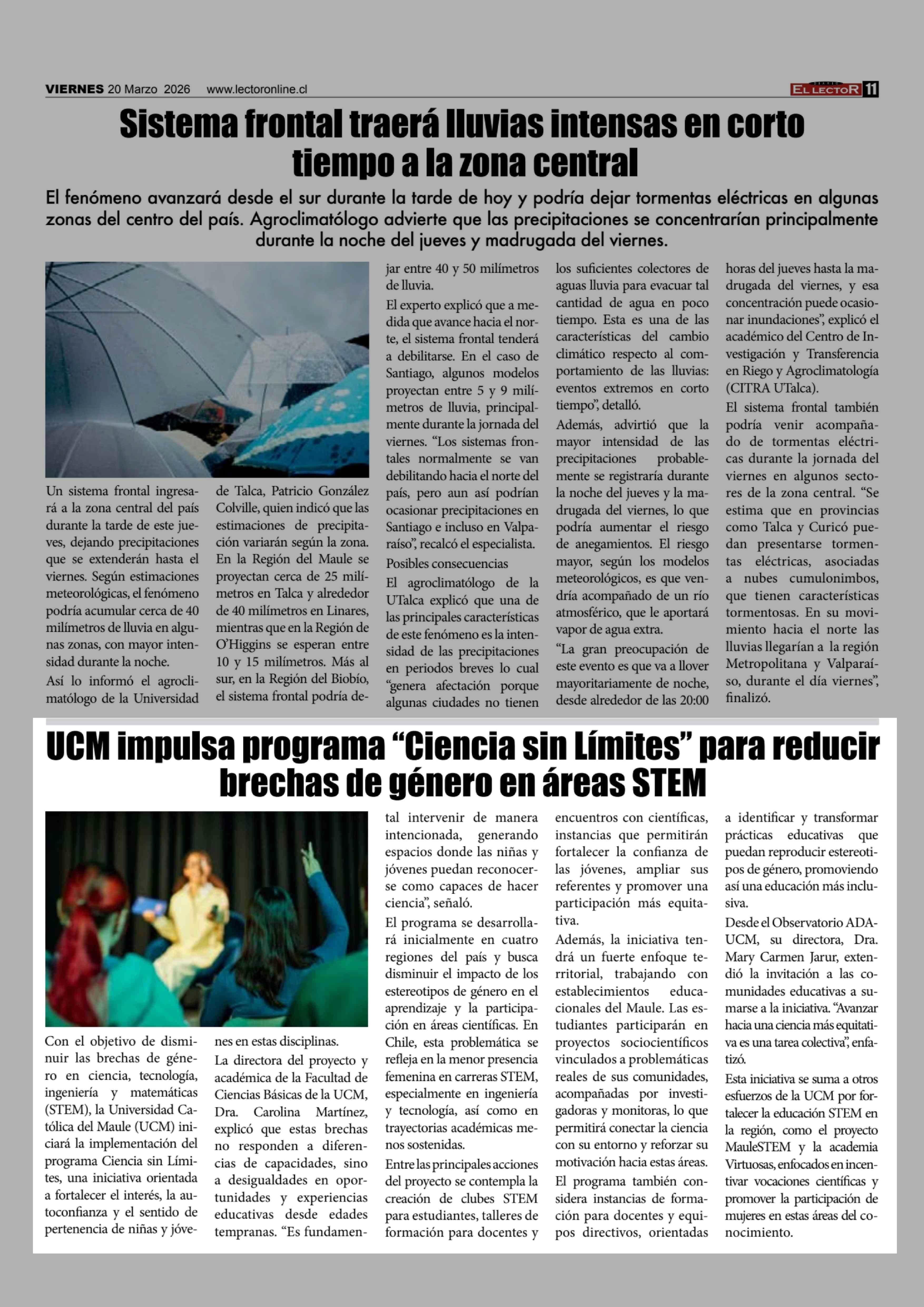 UCM impulsa programa "Ciencia sin Límites" para reducir brechas de género en áreas STEM 20-03-2026 El Lector |