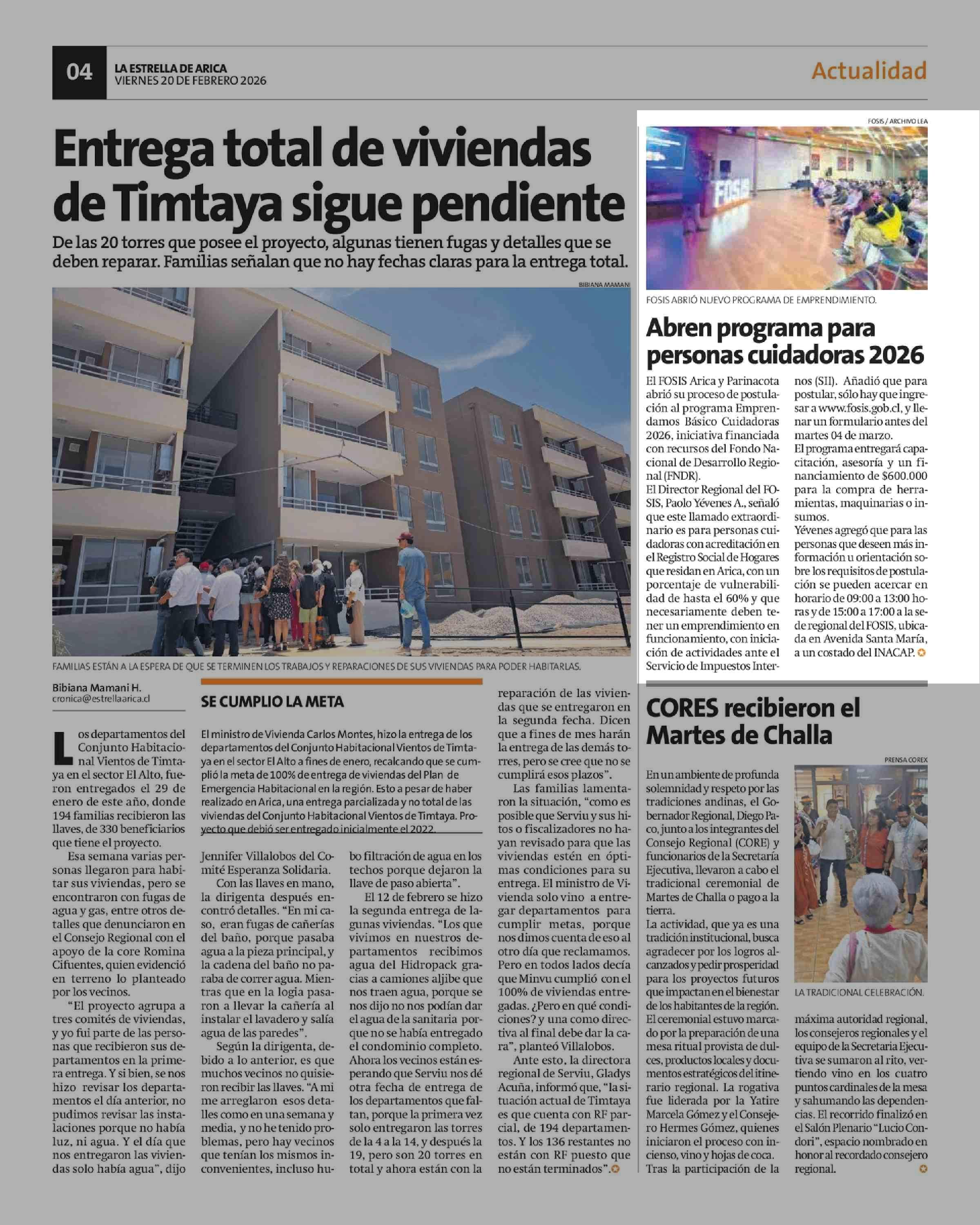 | Fecha: | 20-02-2026 | Sector: | Noticia general | Región: | Región de Arica y Parinacota |