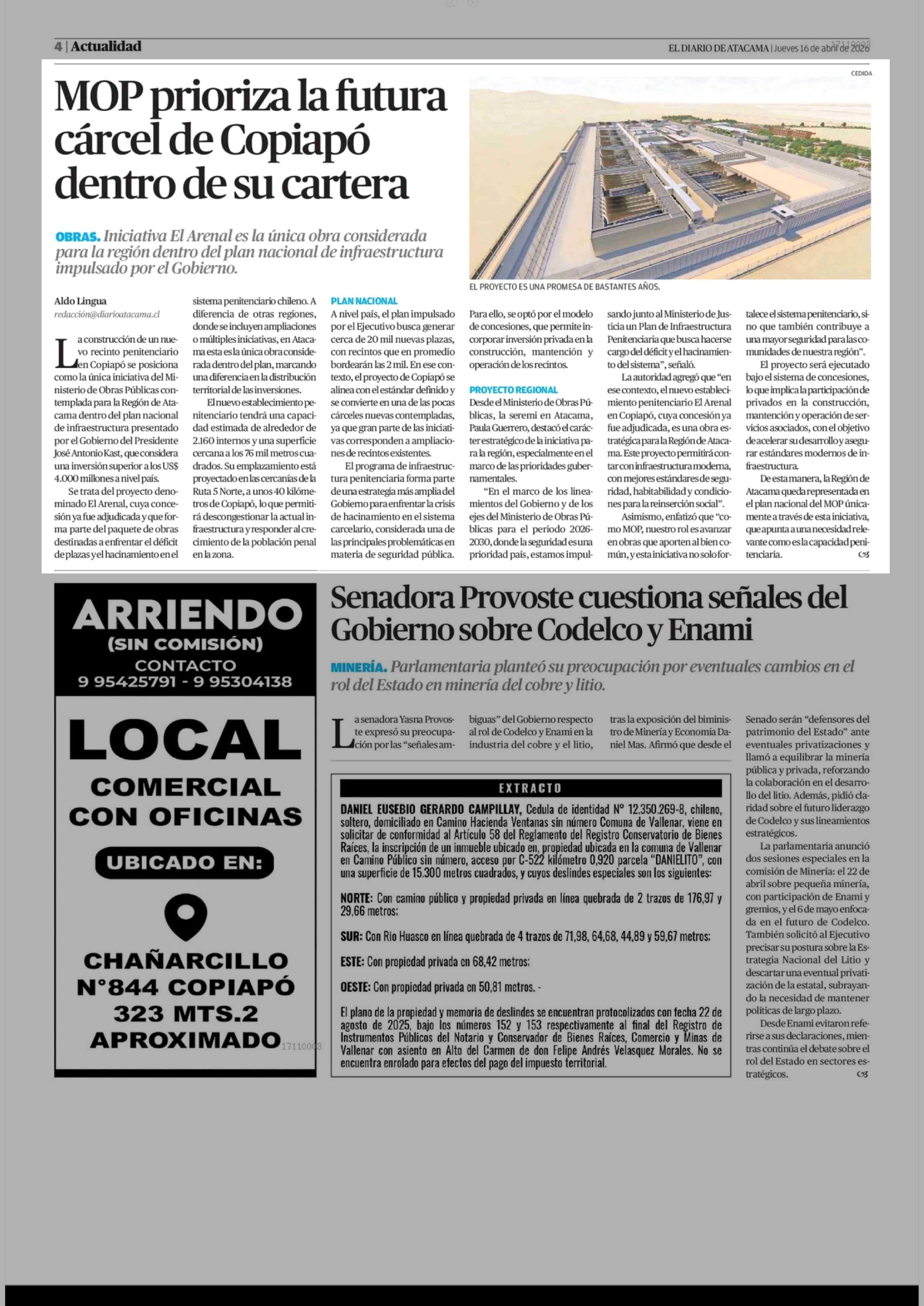 | Fecha: | 16-04-2026 | Sector: | Noticia general | Región: | Región de Atacama |