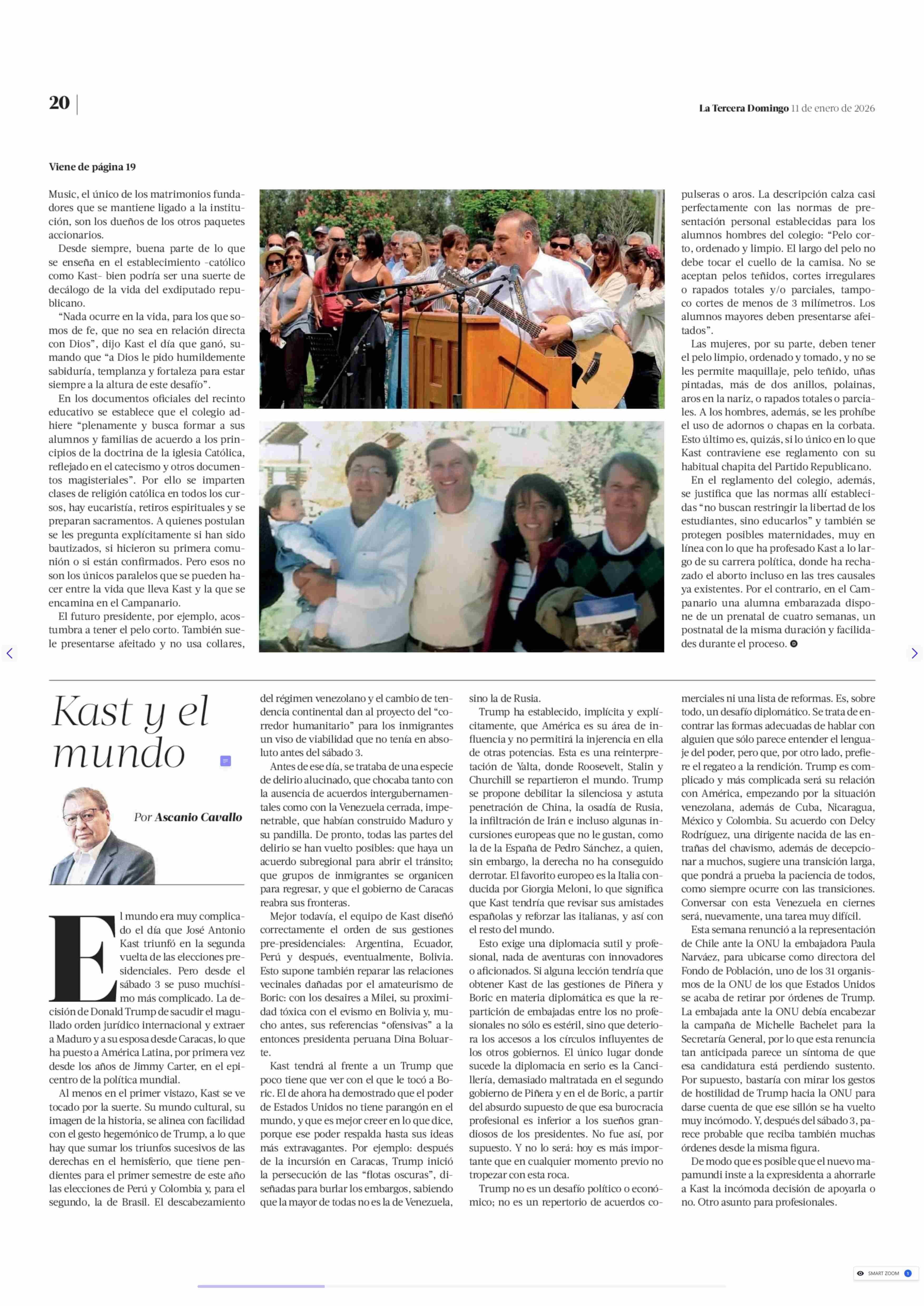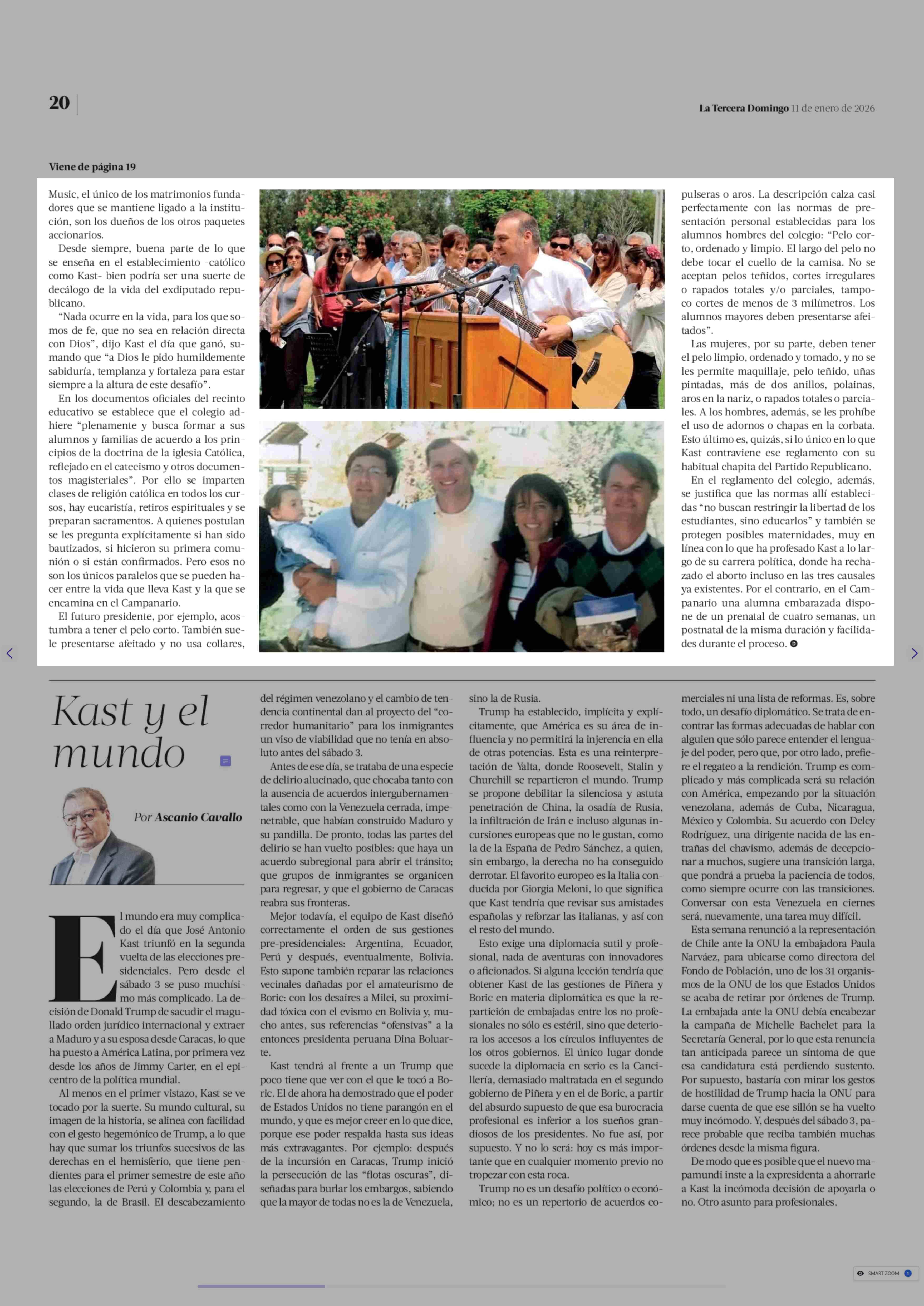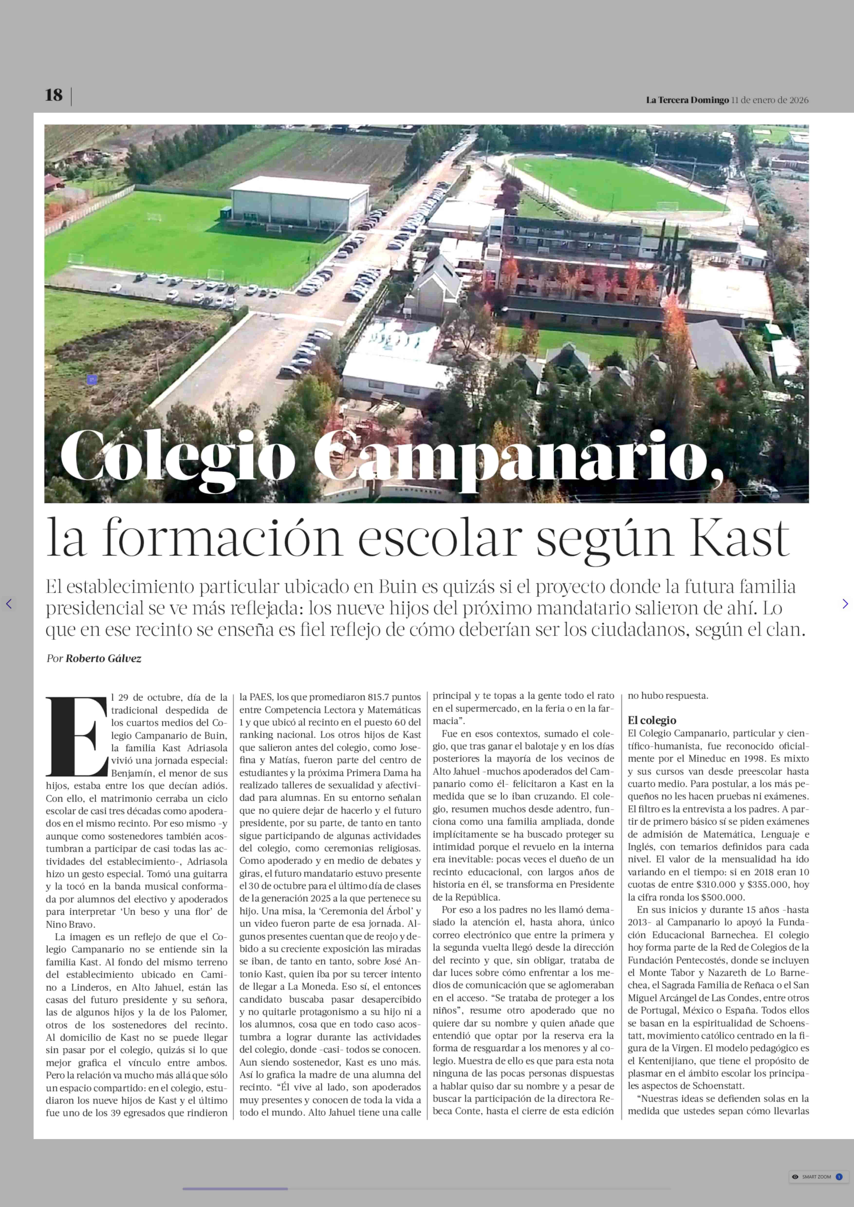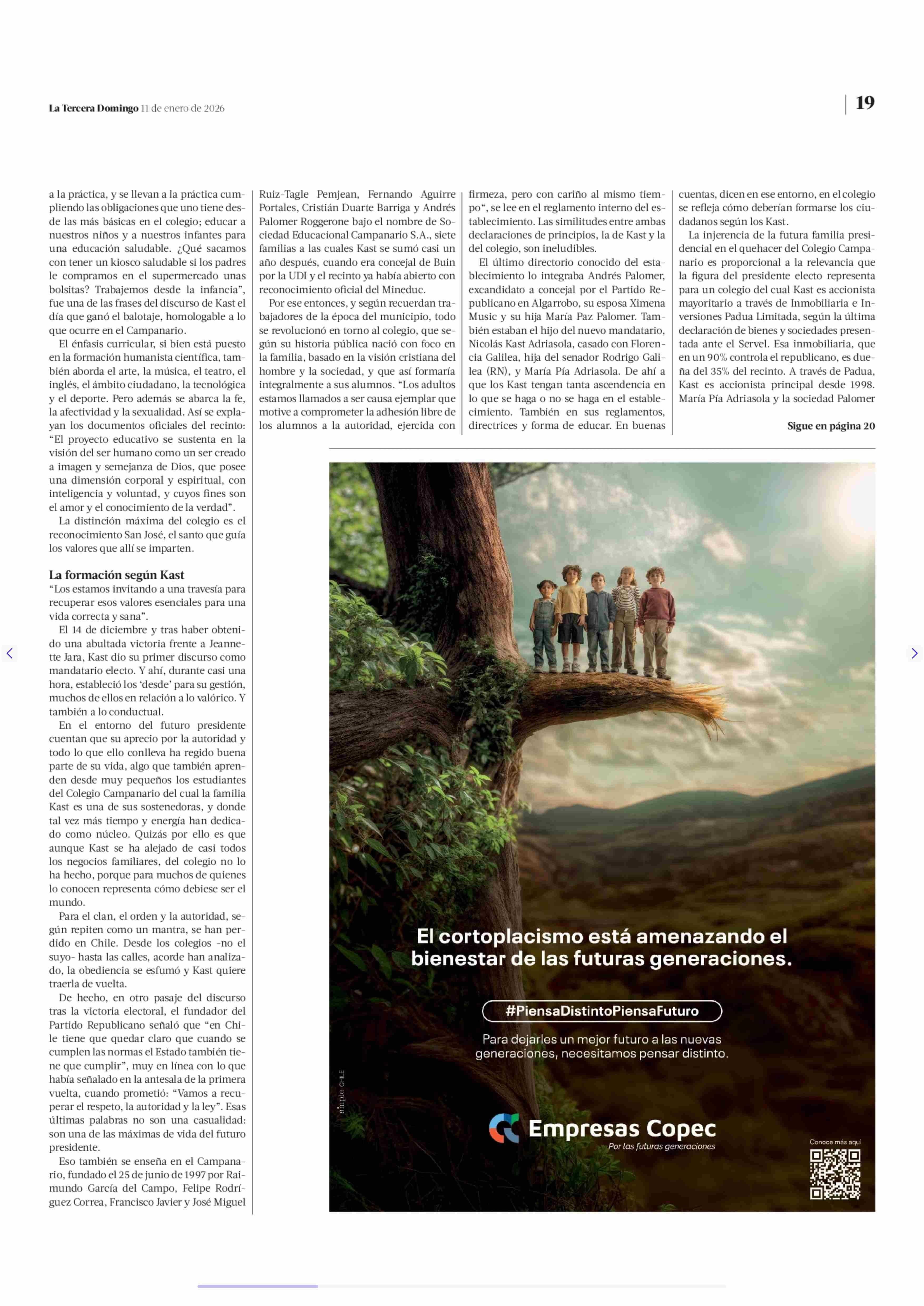 Colegio campanario, La formación escolar según Kast 11-01-2026 La Tercera |