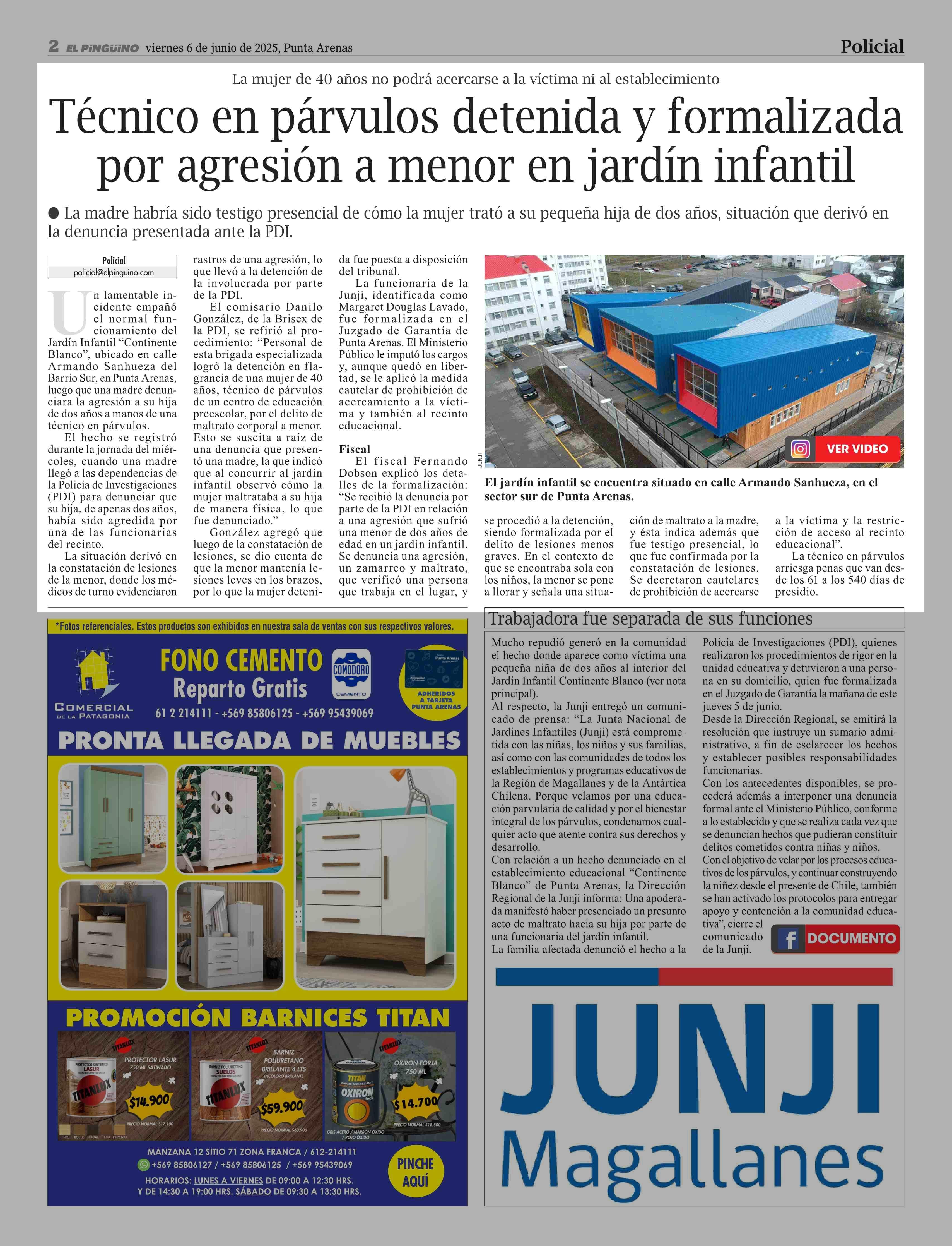 Técnico en párvulos detenida y formalizada por agresión a menor en jardín infantil 06-06-2025 El Pingüino |