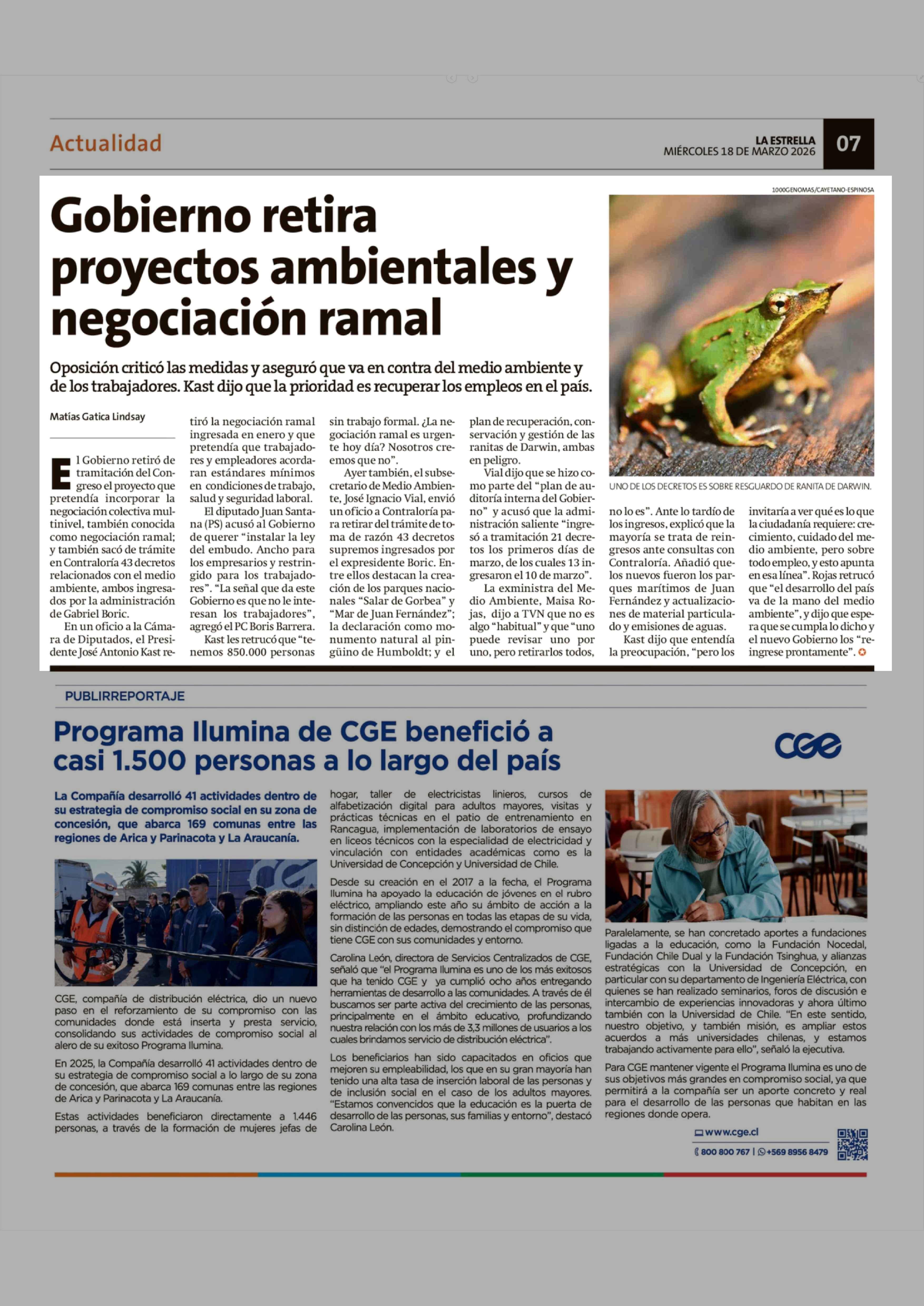 Título: Gobierno retira proyectos ambientales y negociación ramal