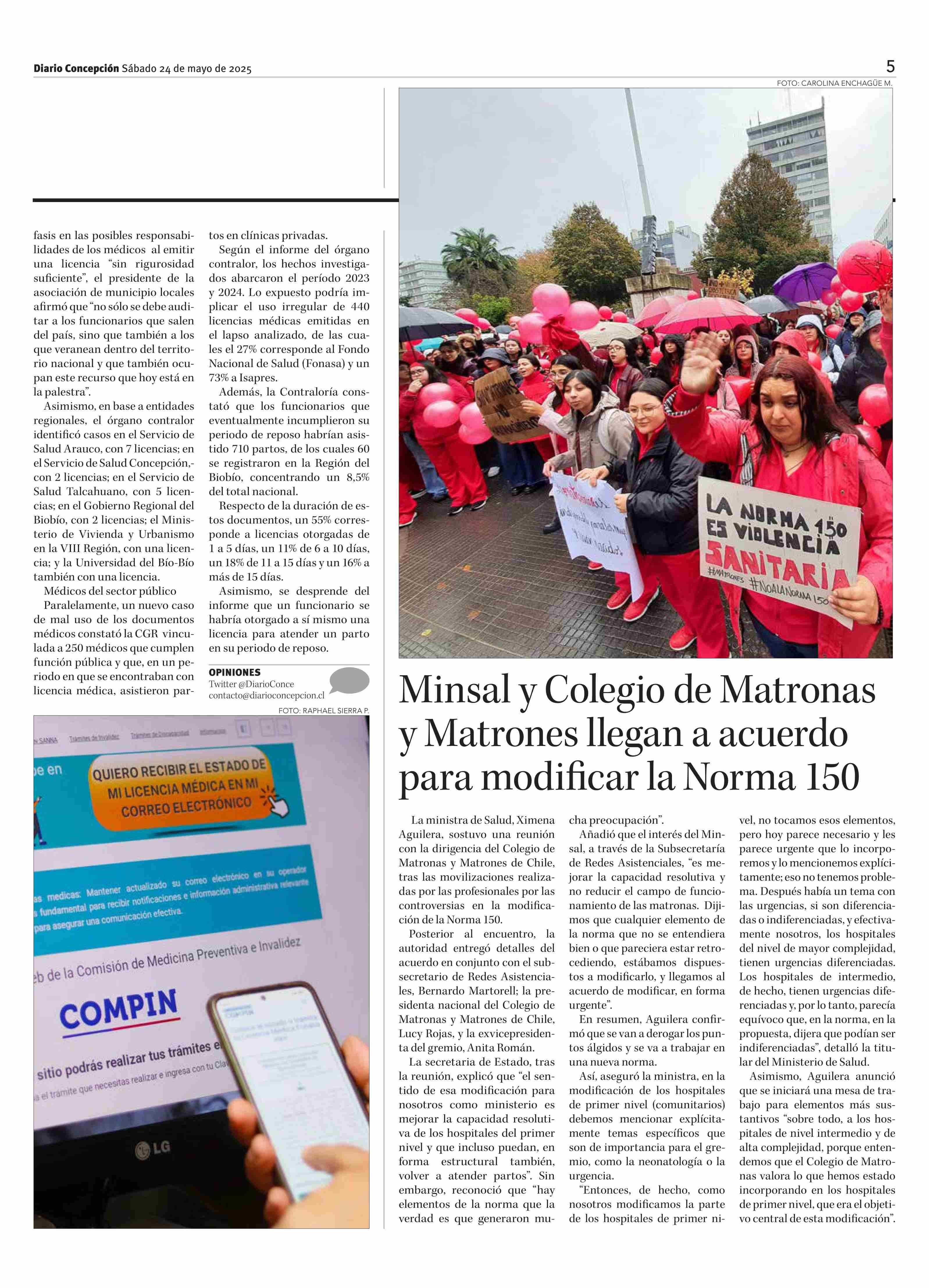 Minsal y Colegio de Matronas y Matrones llegan a acuerdo para modificar la Norma 150 24-05-2025 Diario Concepción |