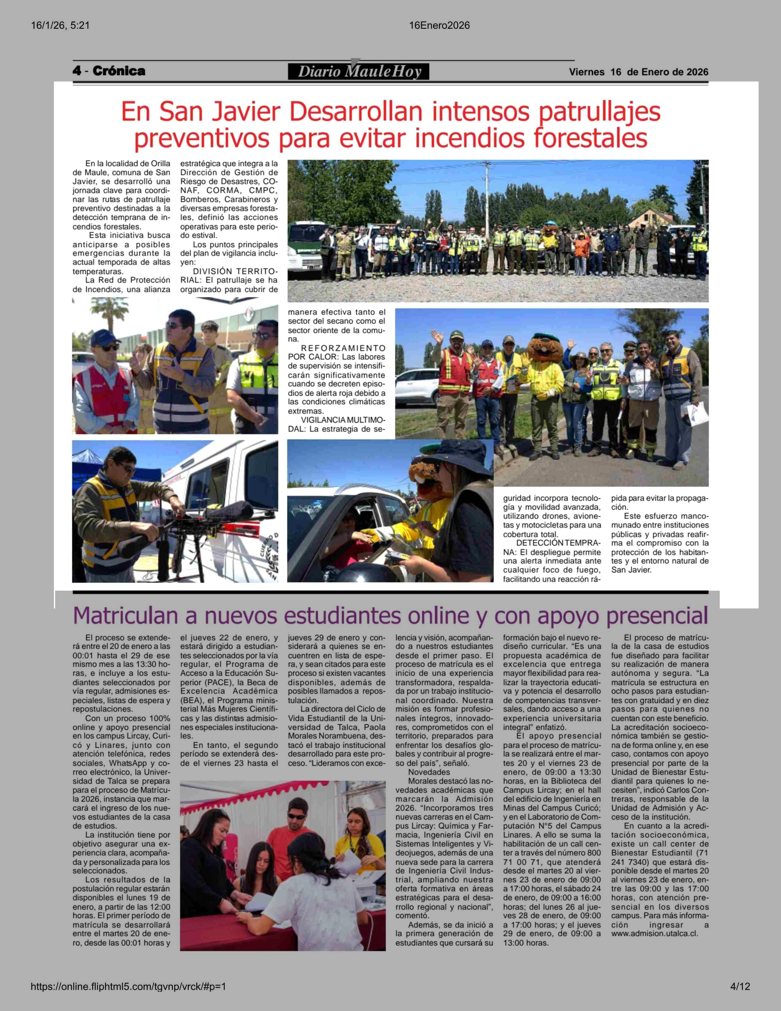 Fecha: 16-01-2026 Sector: Noticia general Región: Región del Maule