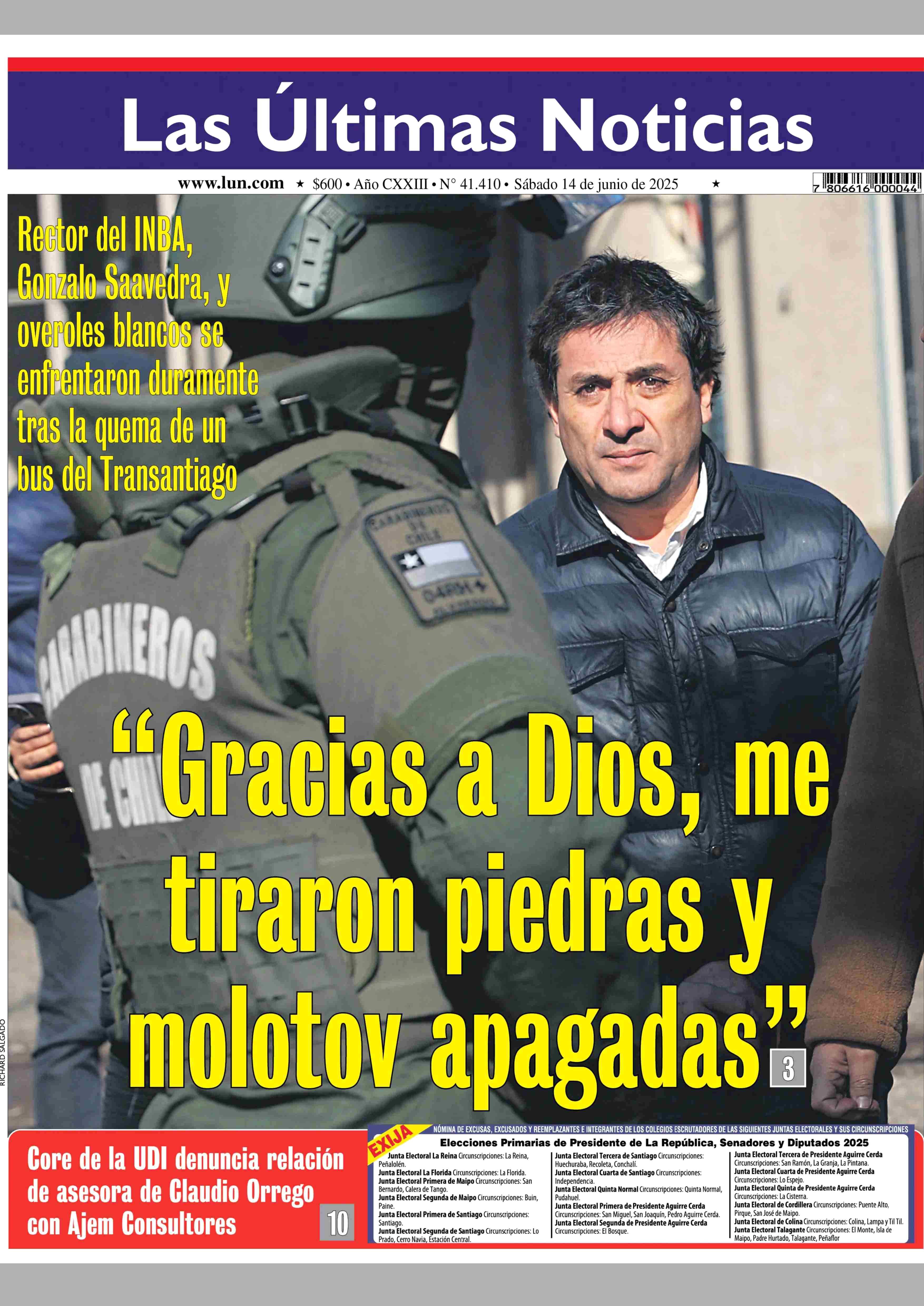 PORTADA LAS ÚLTIMAS NOTICIAS - CHILE 14-06-2025 Las Últimas Noticias |