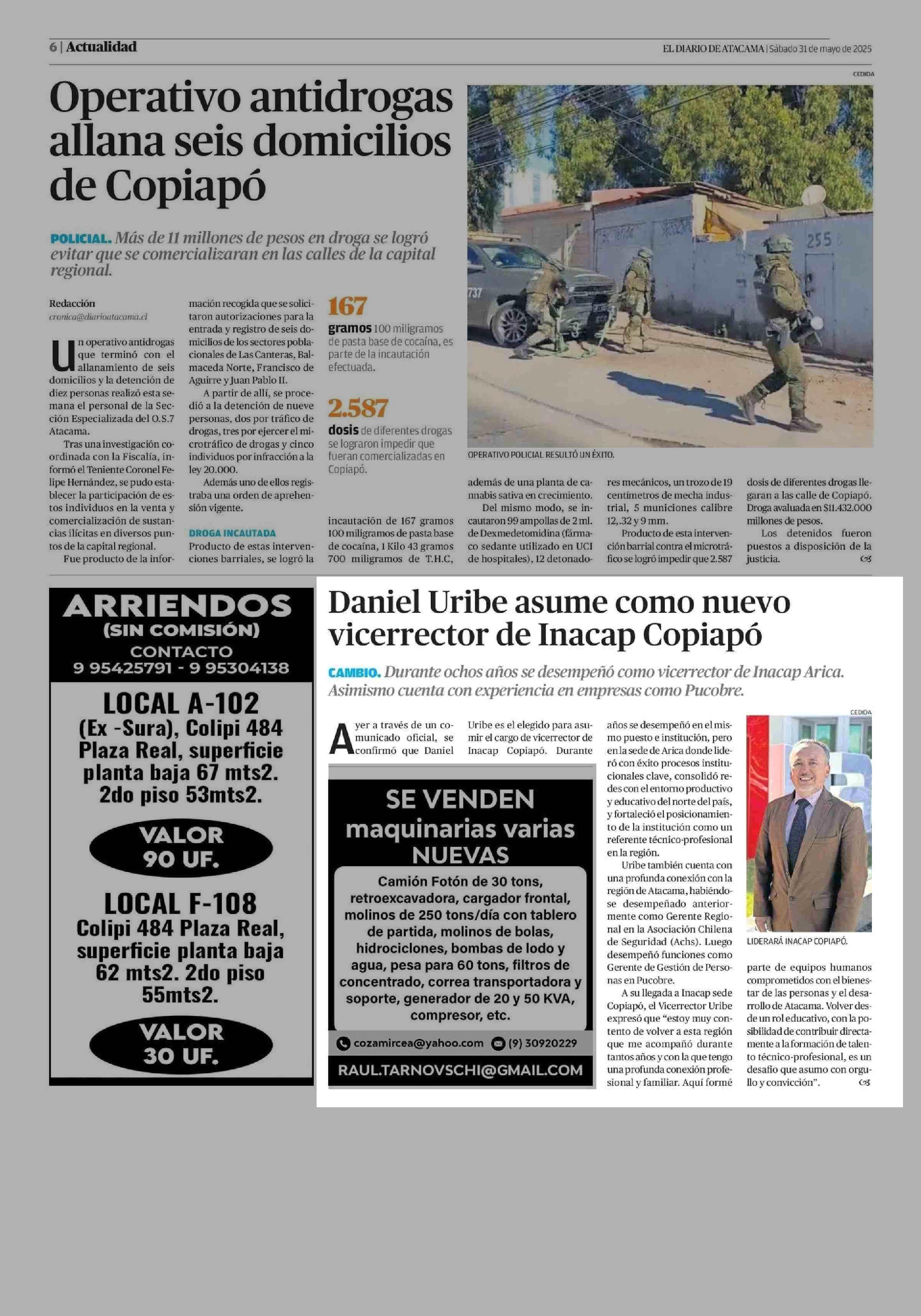 | Fecha: | 31-05-2025 | Sector: | Noticia general | Región: | Región de Atacama |