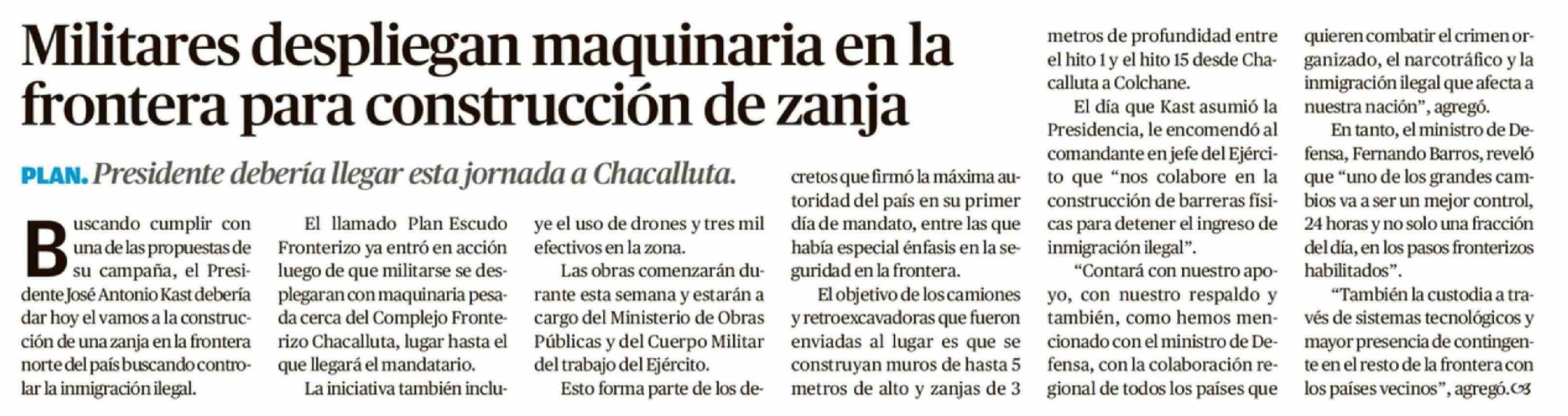 Título: Militares despliegan maquinaria en la frontera para construcción de zanja