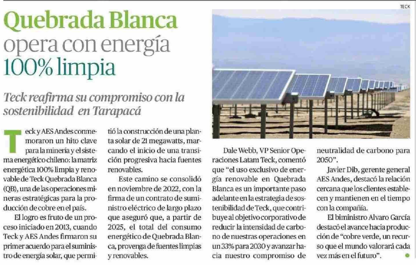 | Título: | Quebrada Blanca Opera con energía 100% limpia |