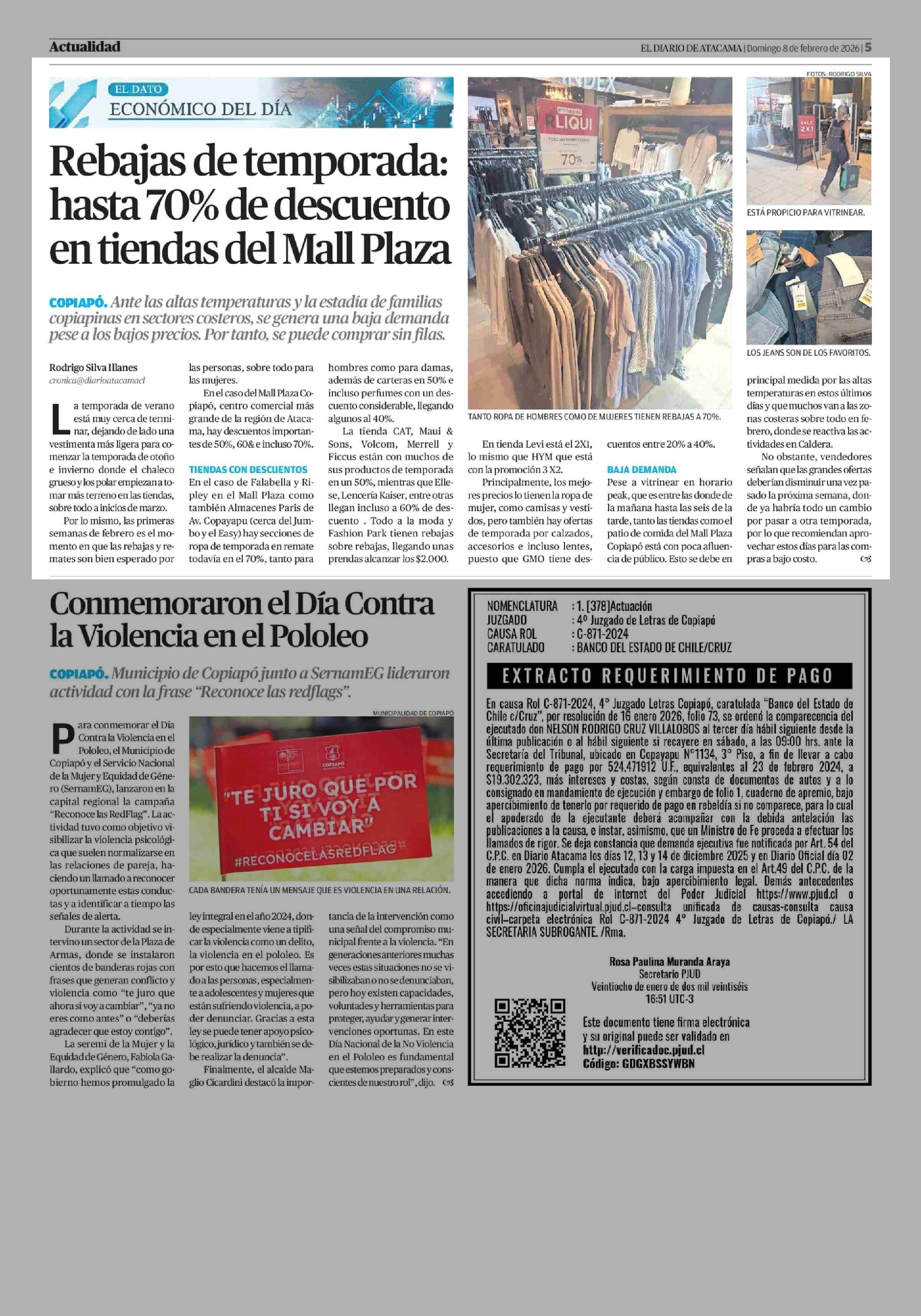 Rebajas de temporada: hasta 70% de descuento en tiendas del Mall Plaza 08-02-2026 El Diario de Atacama |