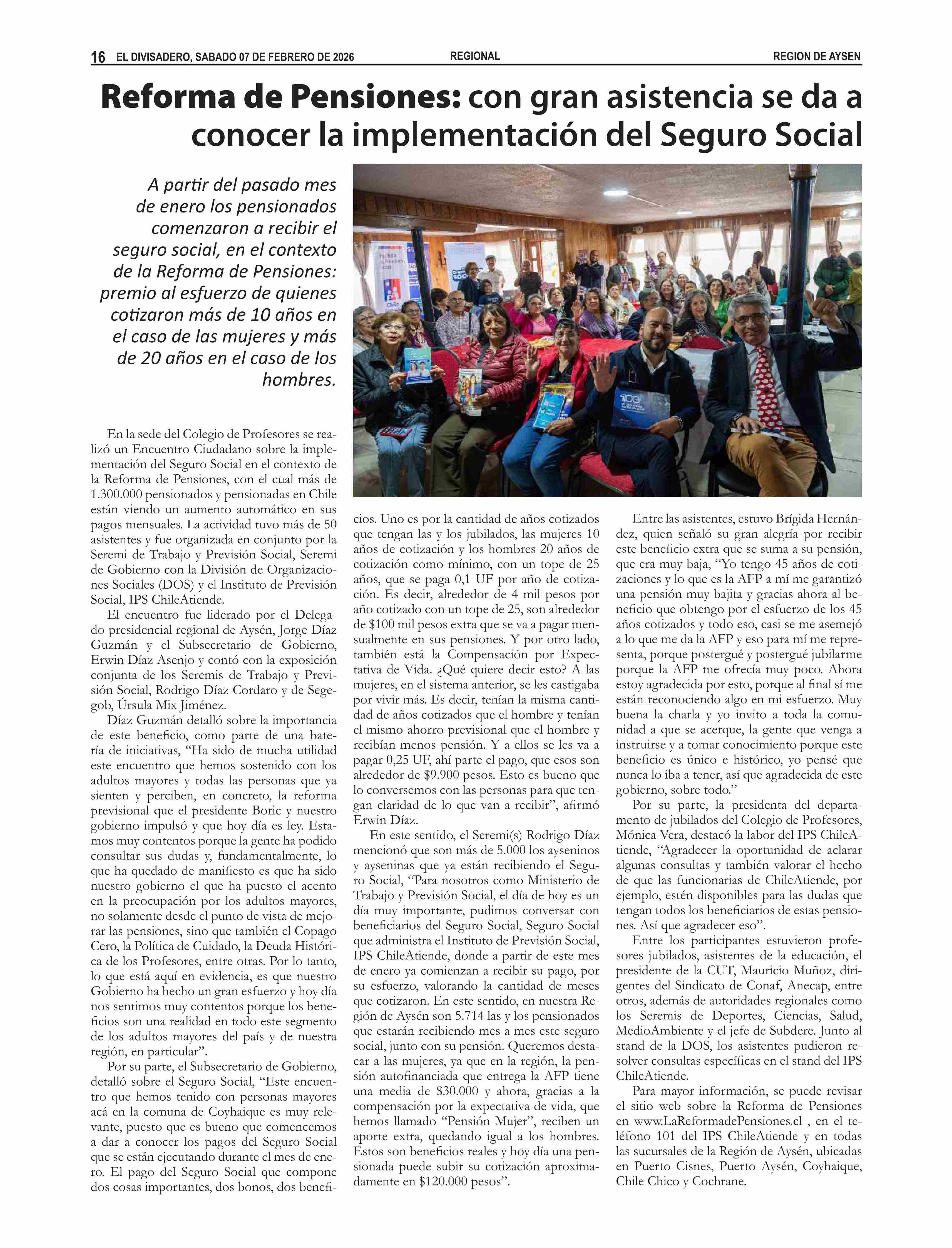 Reforma de Pensiones: con gran asistencia se da a conocer la implementación del Seguro Social 07-02-2026 El Divisadero |