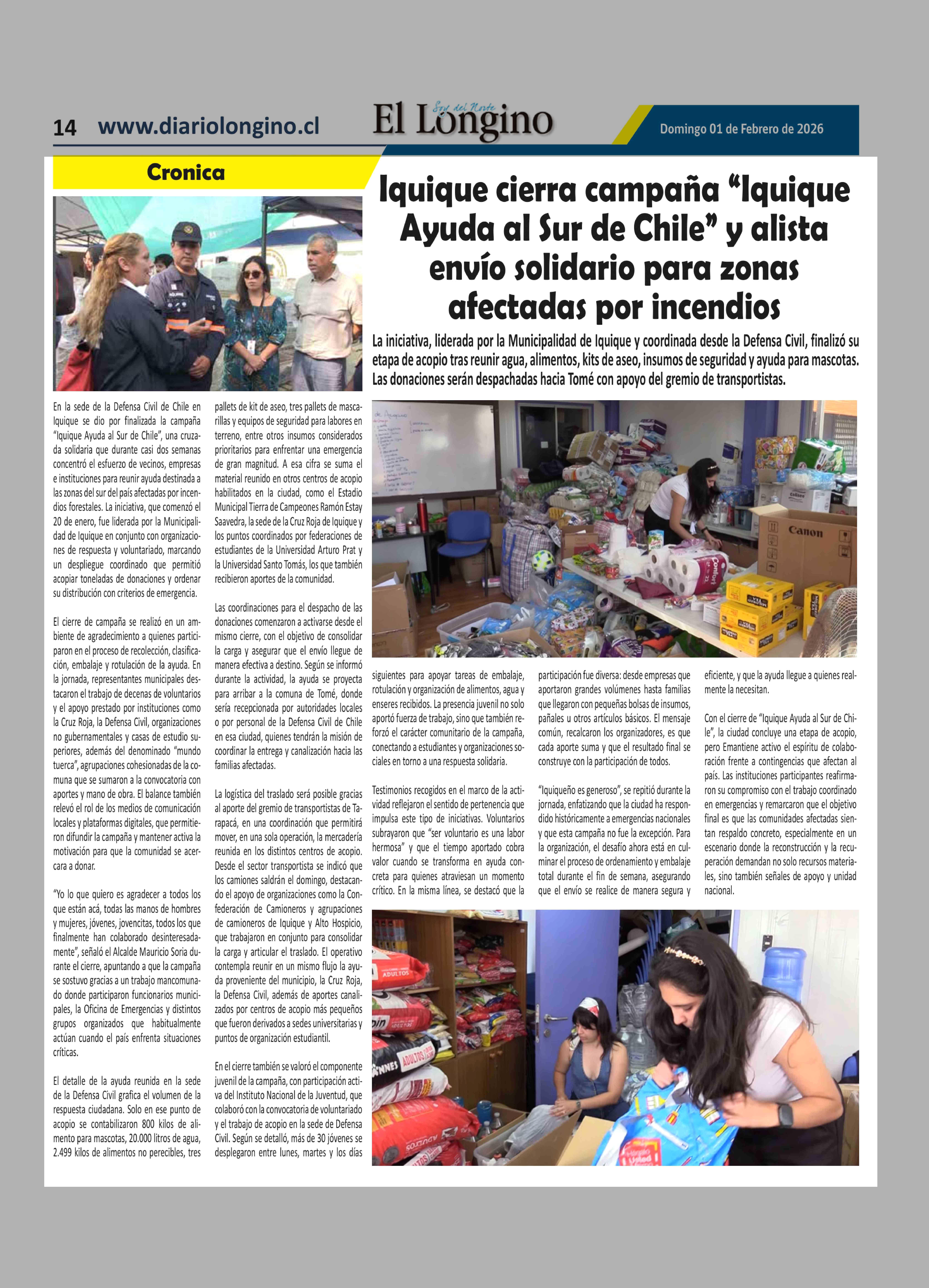 Fecha: 01-02-2026 Sector: Noticia general Región: Región de Tarapacá