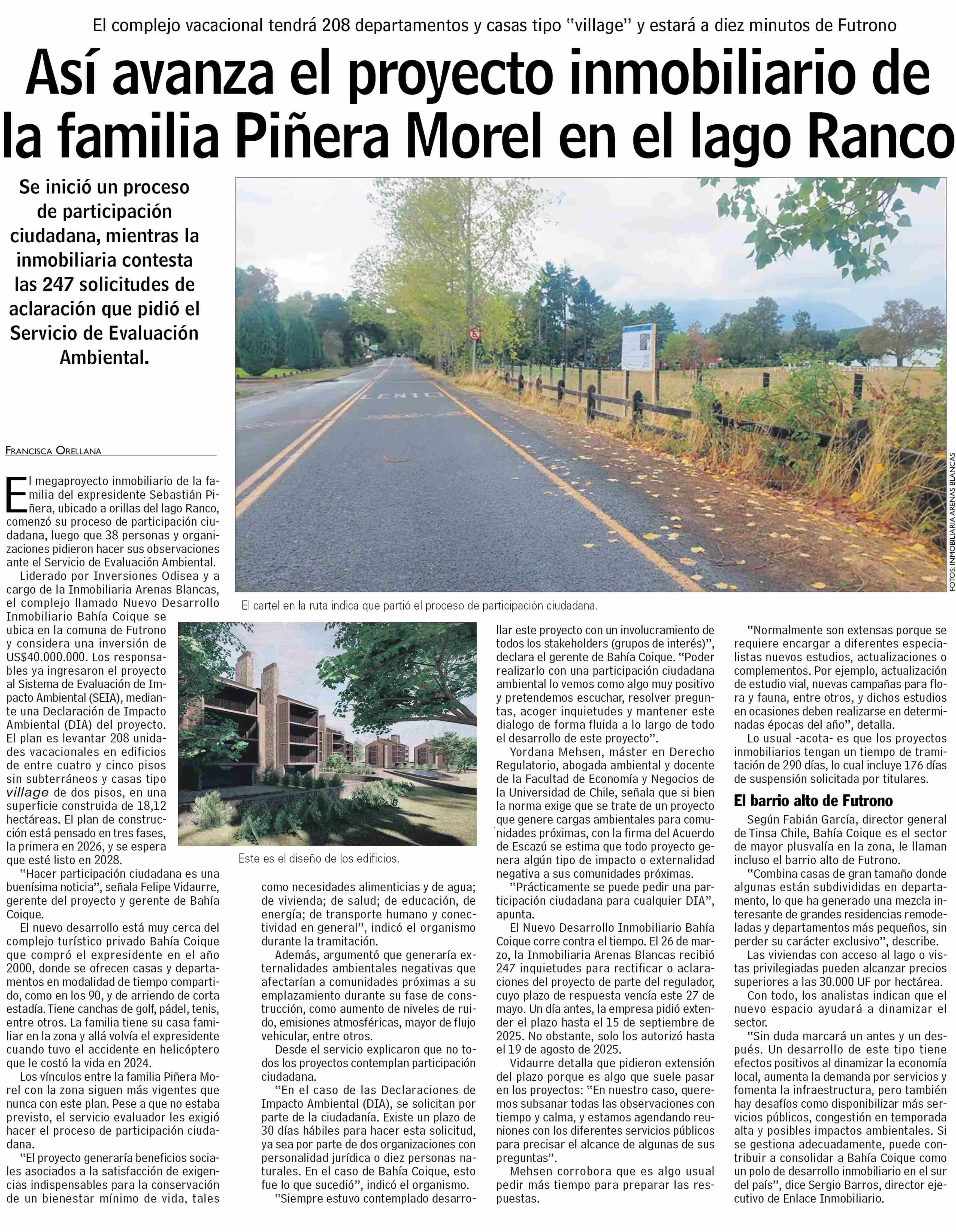 Asi avanza el proyecto inmobiliario de a familia Piñera Morel en el lago Ranco 29-05-2025 Las Últimas Noticias |
