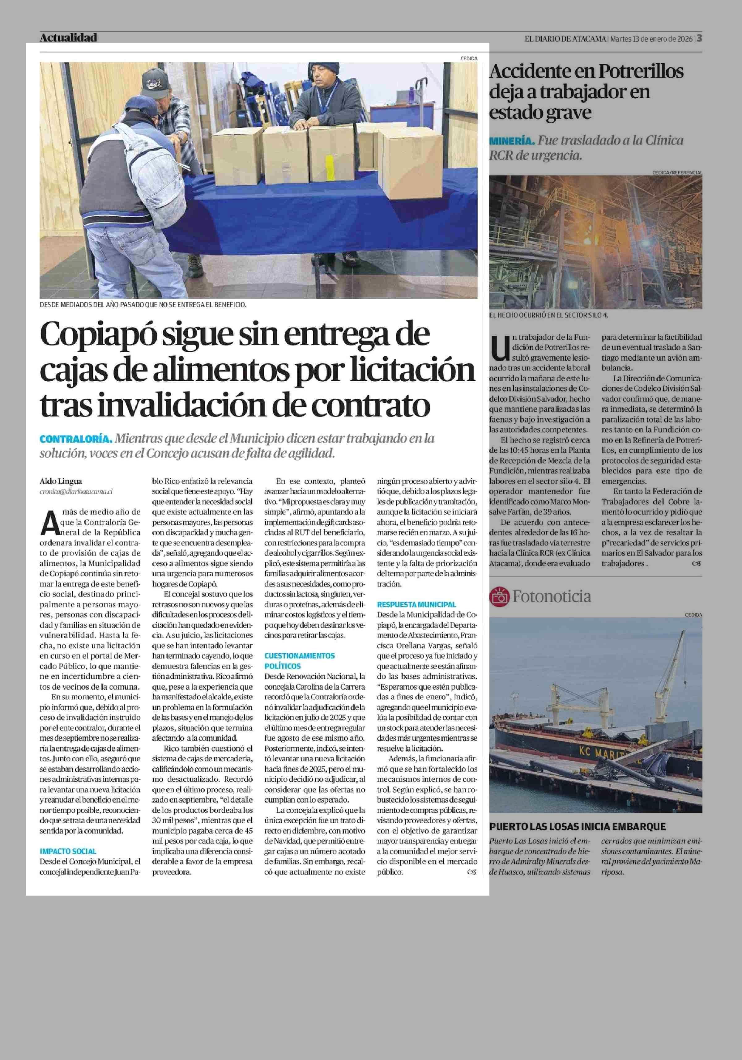 Copiapó sigue sin entrega de cajas de alimentos por licitación tras invalidación de contrato 13-01-2026 El Diario de Atacama |