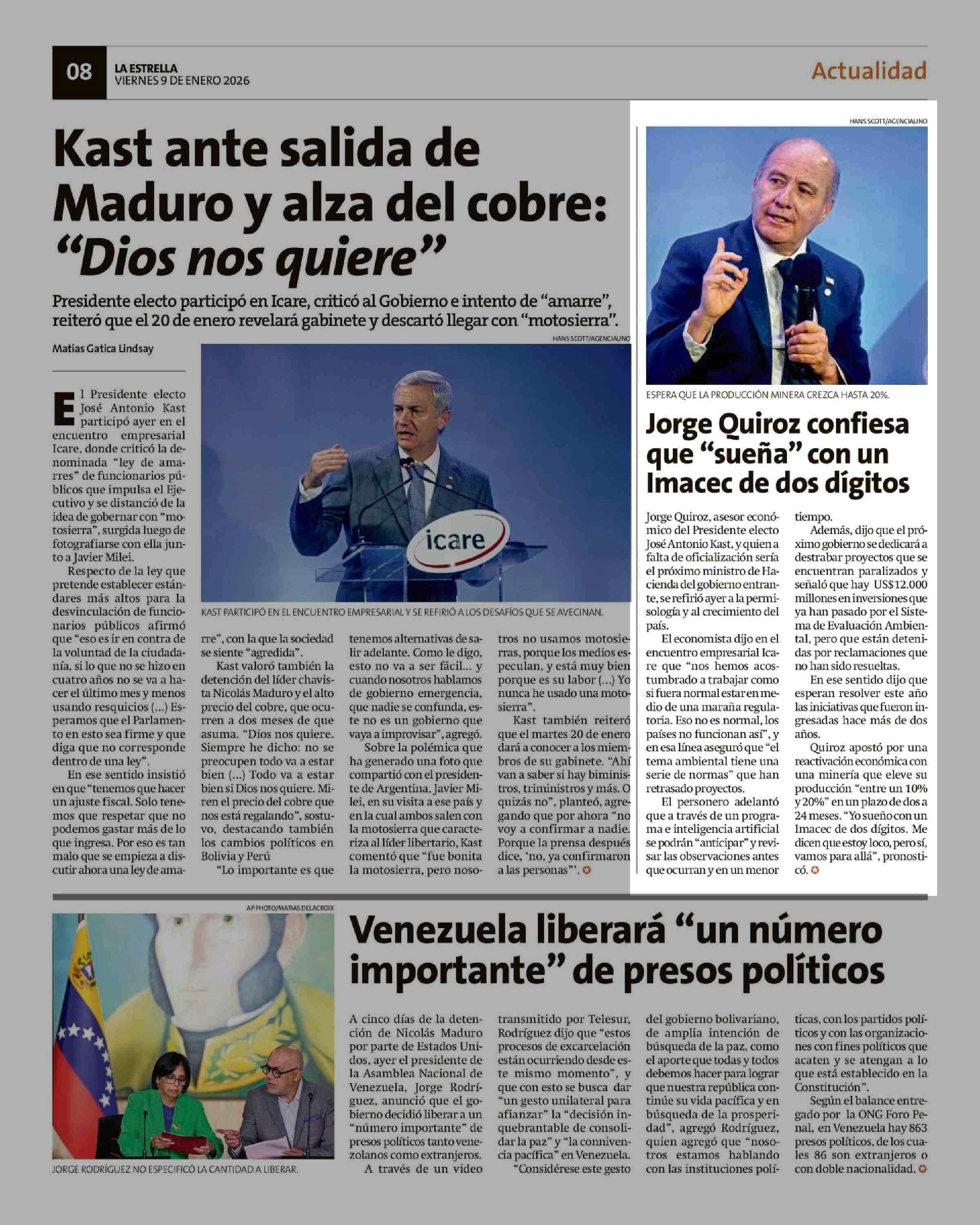 Jorge Quiroz confiesa que "sueña" con un Imacec de dos dígitos 09-01-2026 La Estrella de Chiloé |