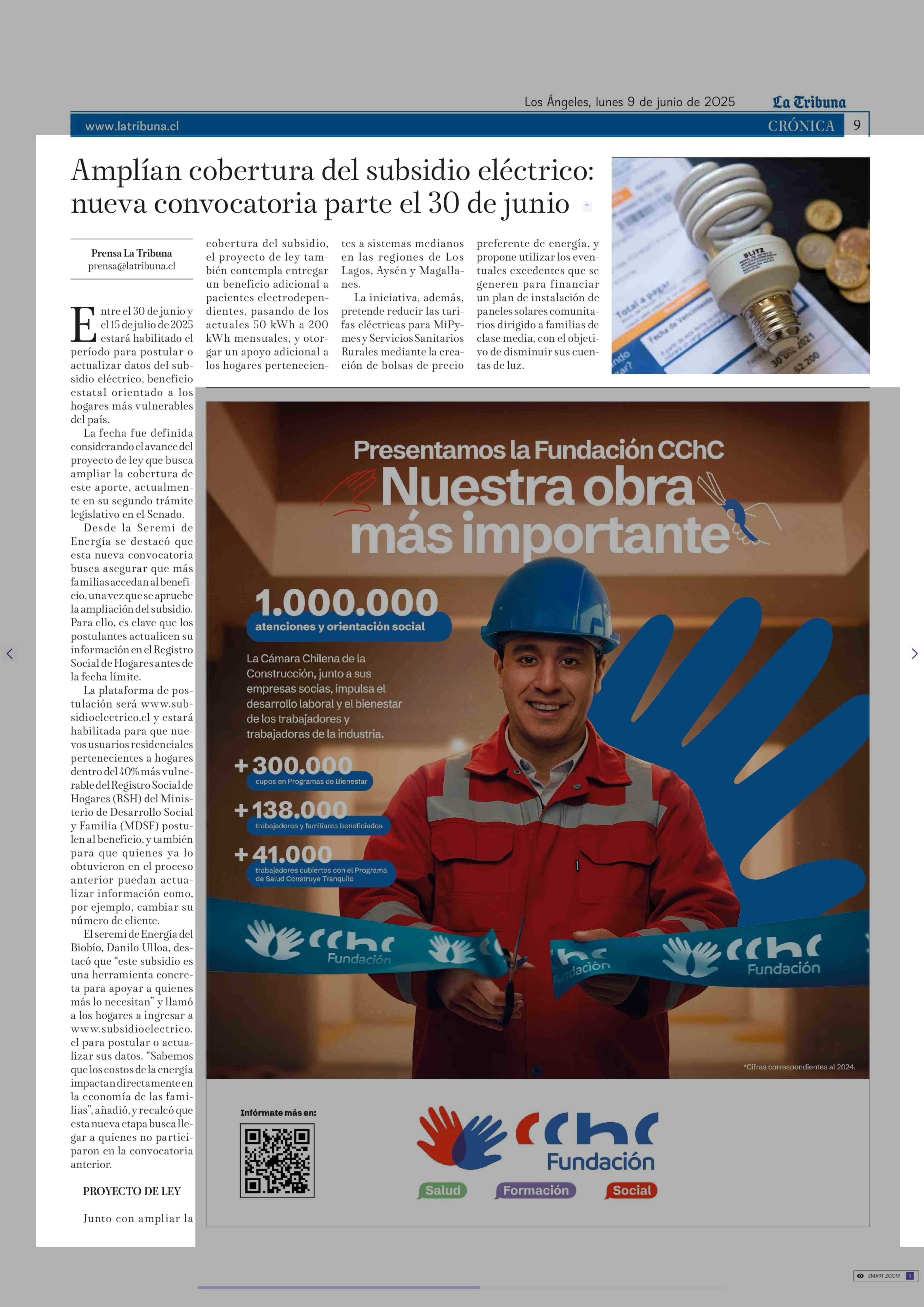 Amplían cobertura del subsidio eléctrico: nueva convocatoria parte el 30 de junio 09-06-2025 La Tribuna |