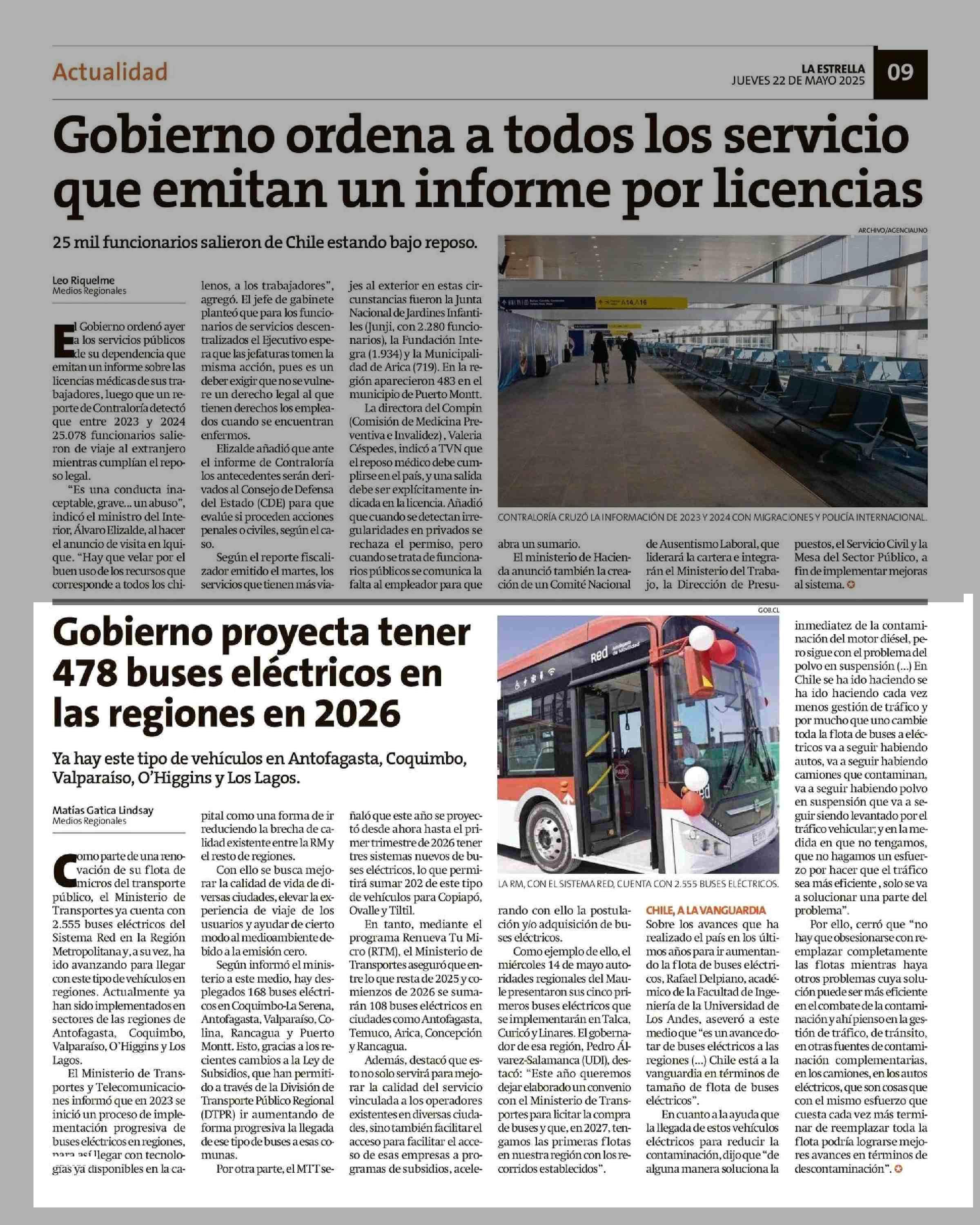 Gobierno proyecta tener 478 buses eléctricos en asregiones asregiones en 2026 22-05-2025 La Estrella de Chiloé |