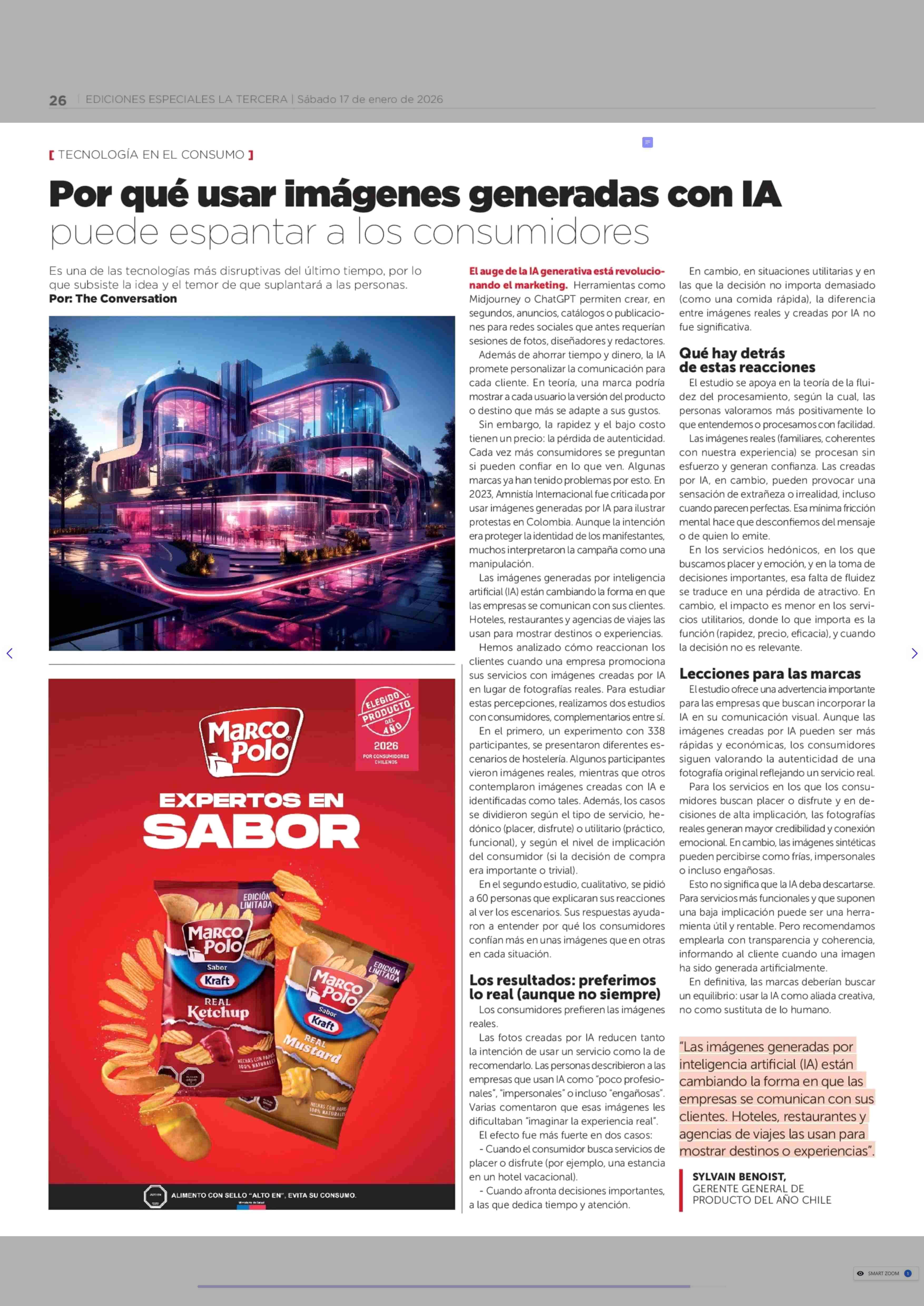 Por qué usar imágenes generadas con lA puede espantar a los consumidores 17-01-2026 La Tercera |