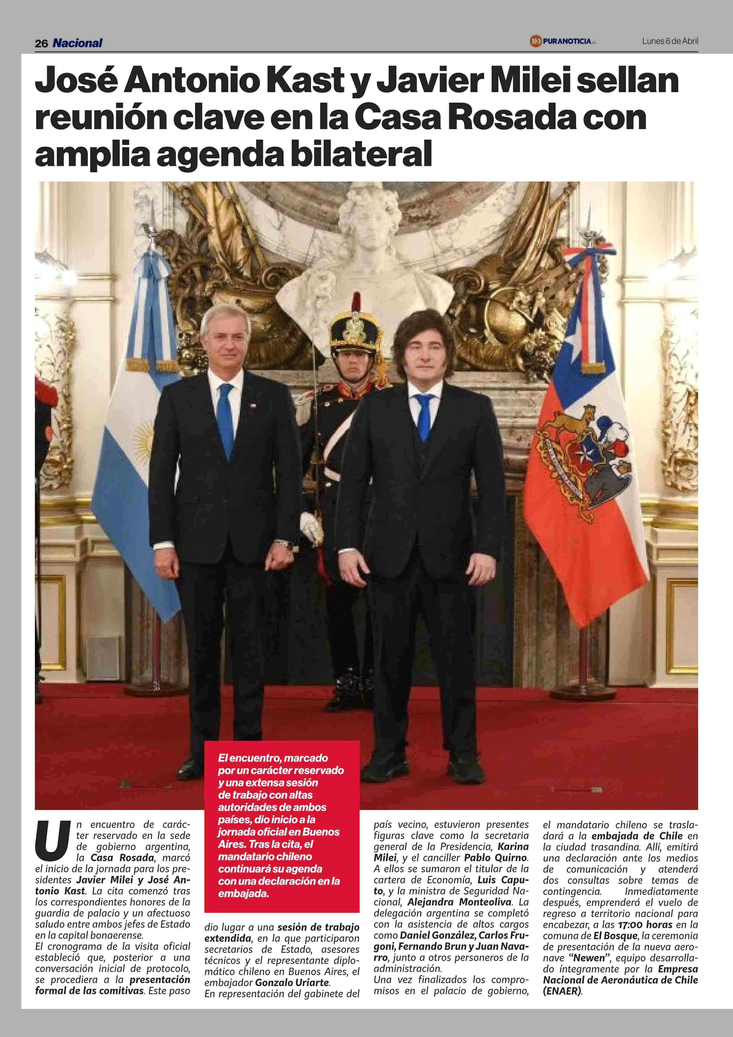 Título: José Antonio Kast y Javier Milei sellan reunión clave en la Casa Rosada con amplia agenda bilateral
