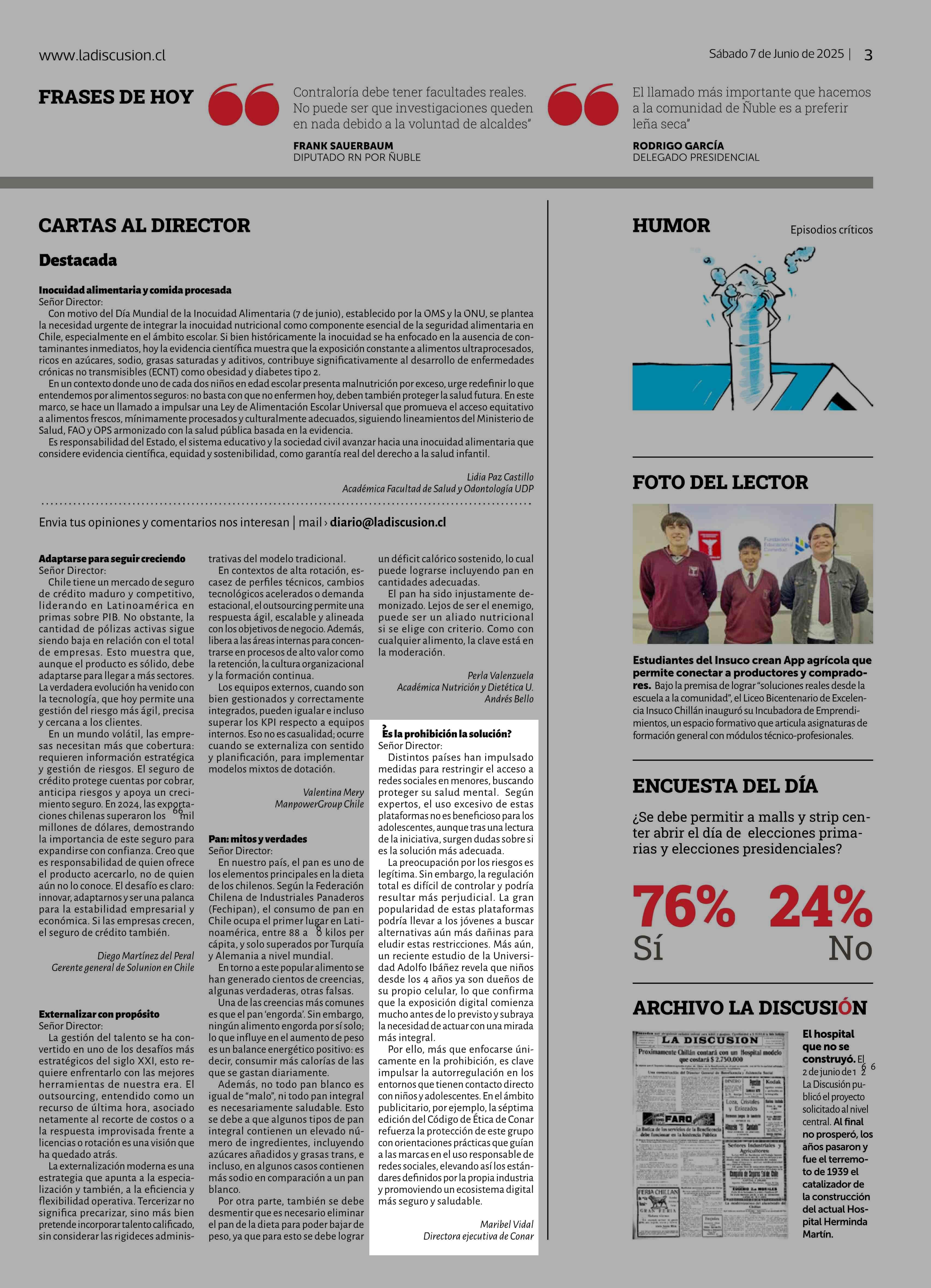 Cartas: ¿Es la prohibición la solución? 07-06-2025 La Discusión |